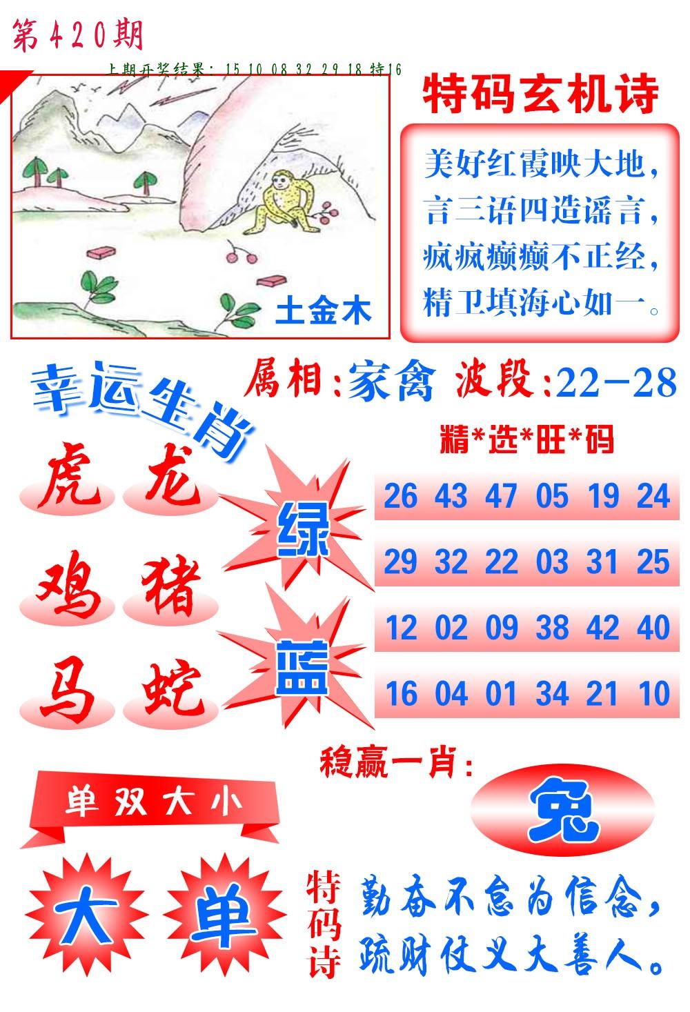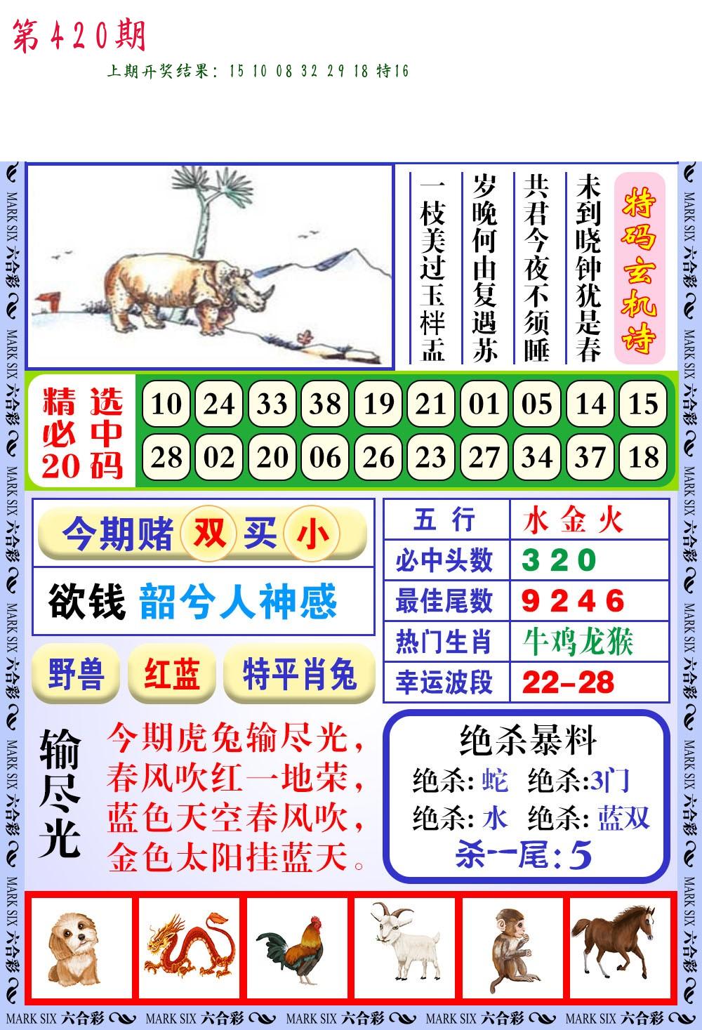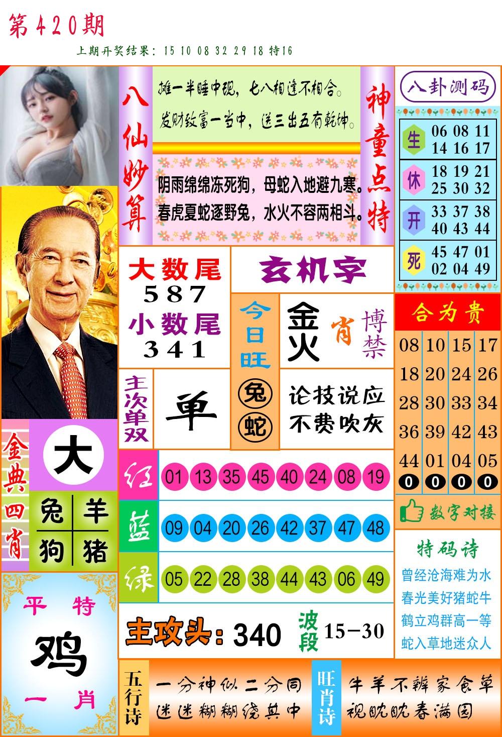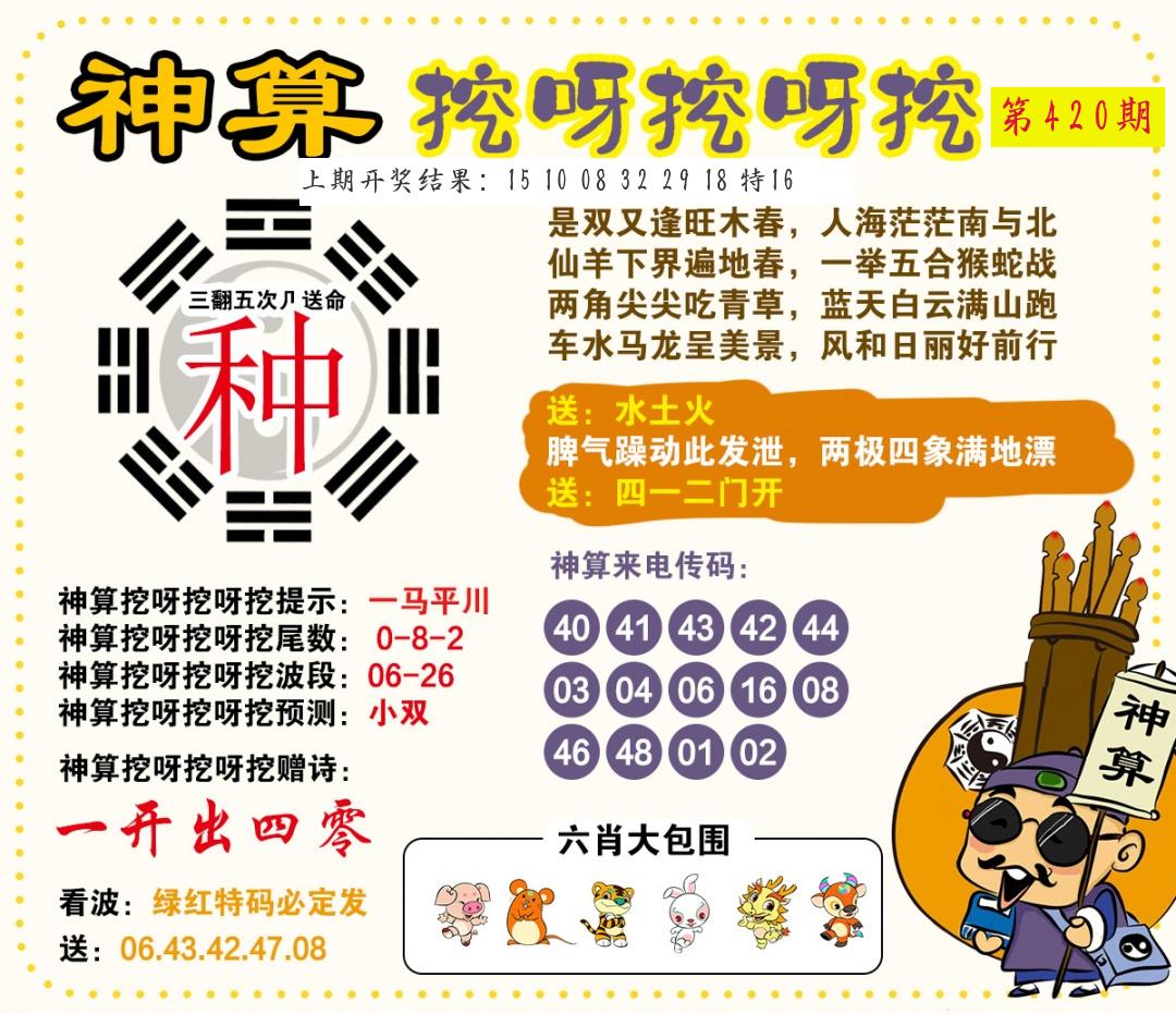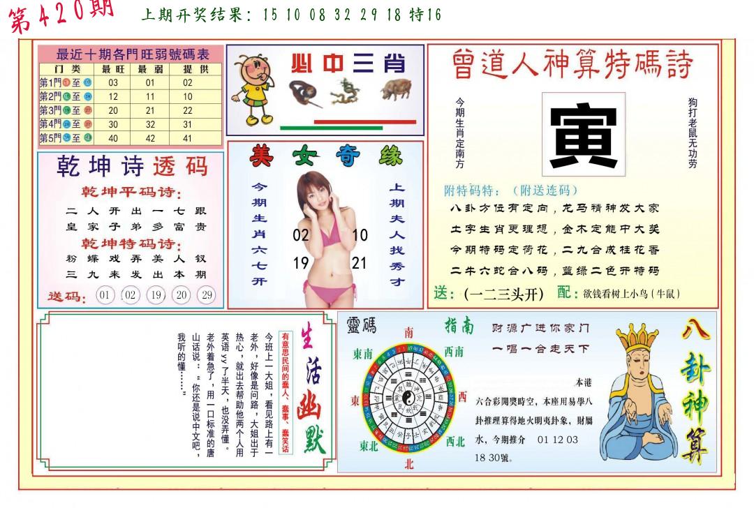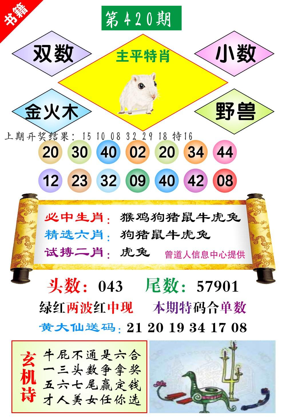 | 0420期:单双四肖八码 开:????? | |