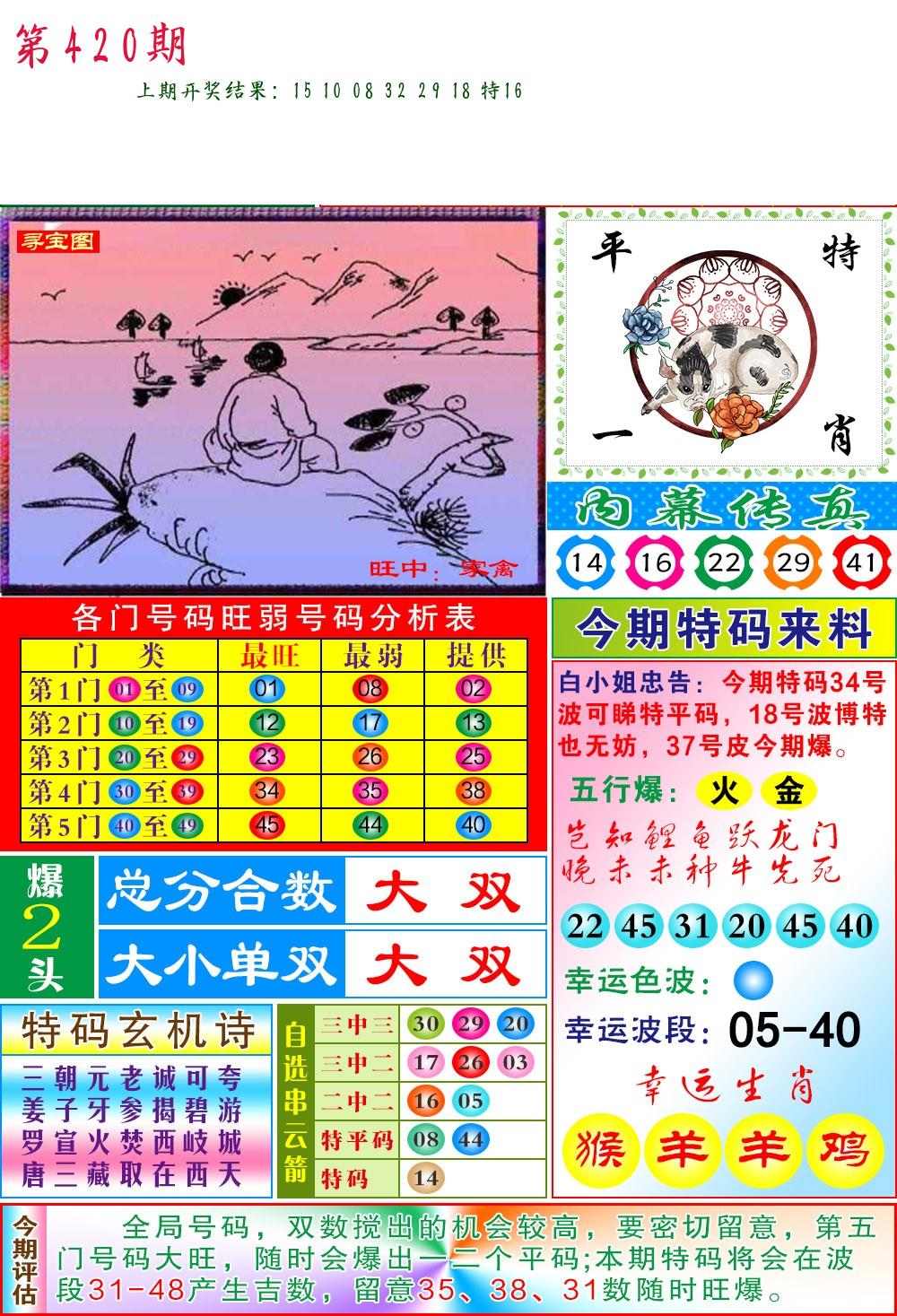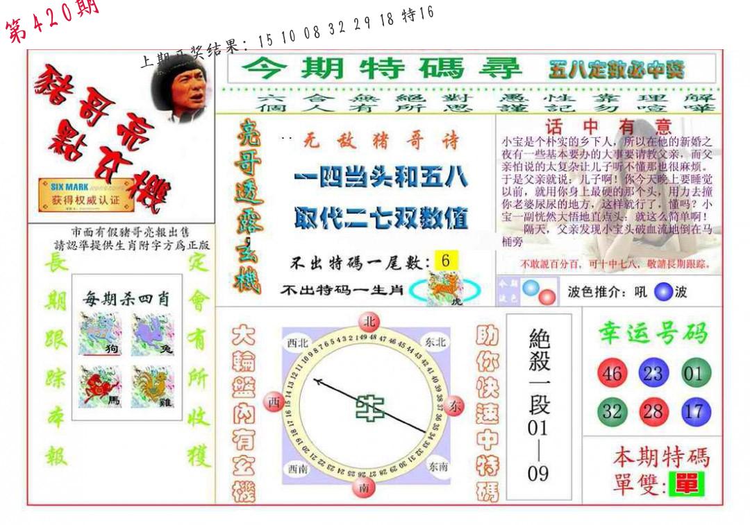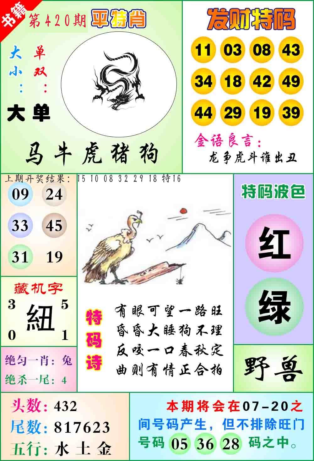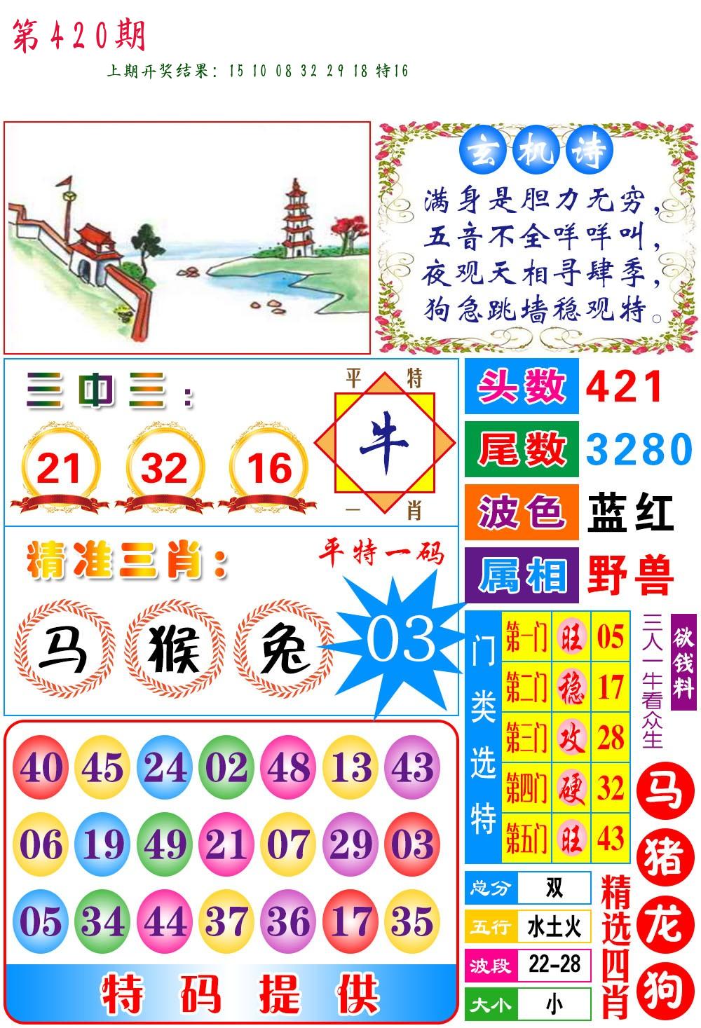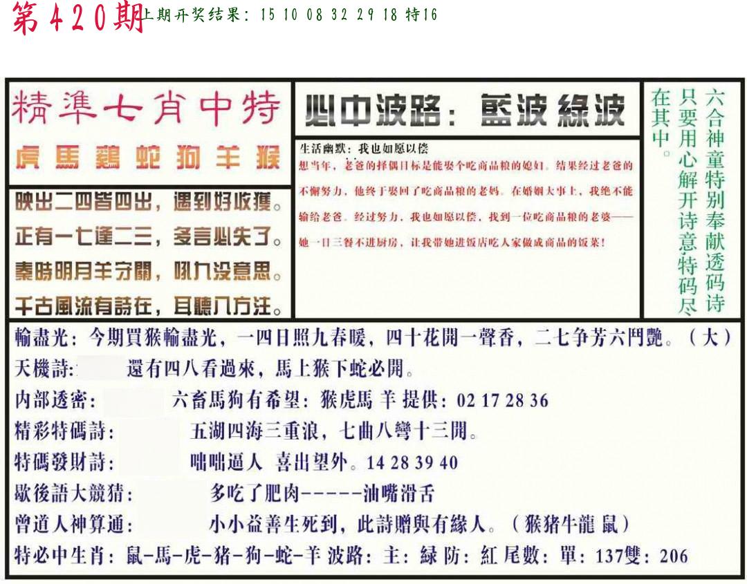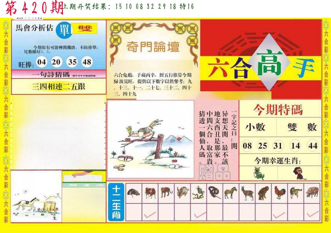 | 0420期:单双四肖八码 开:????? | |