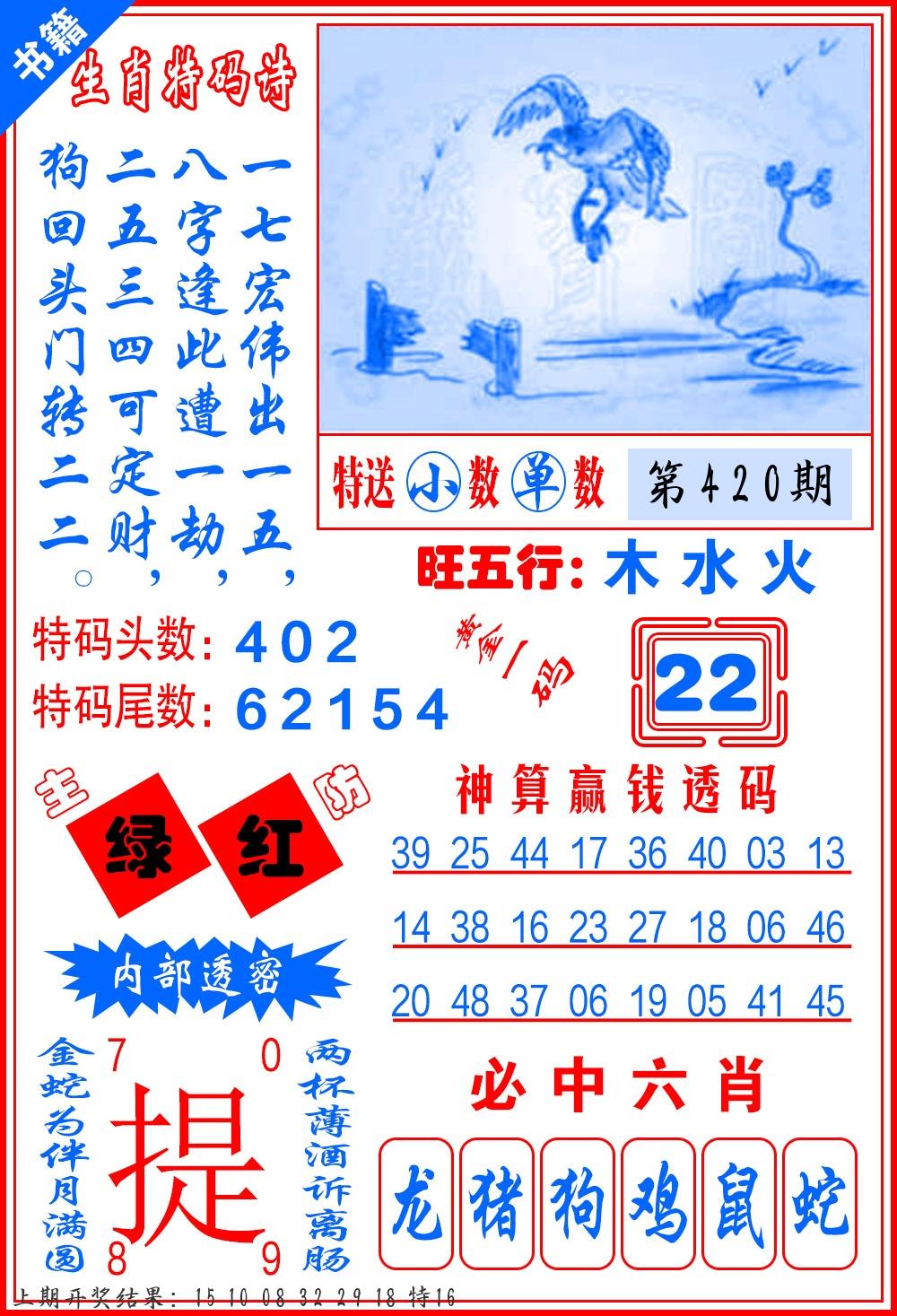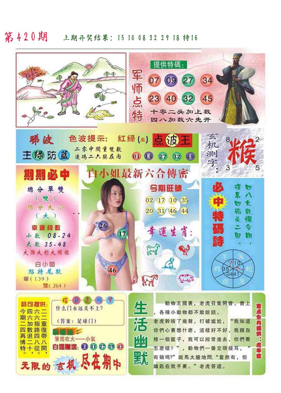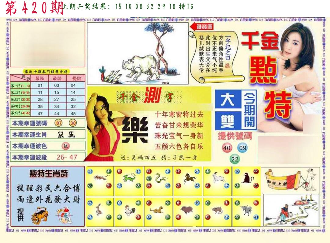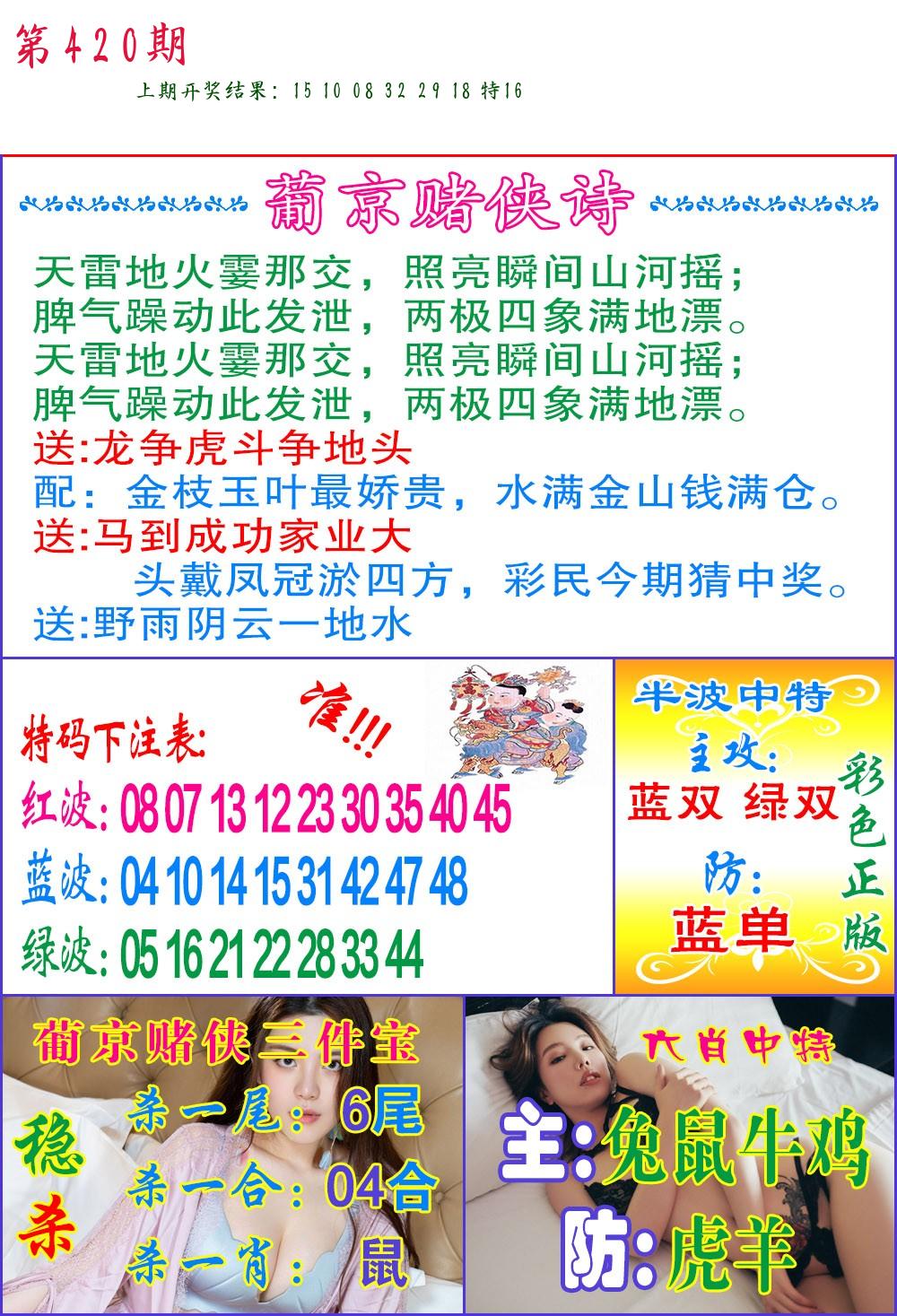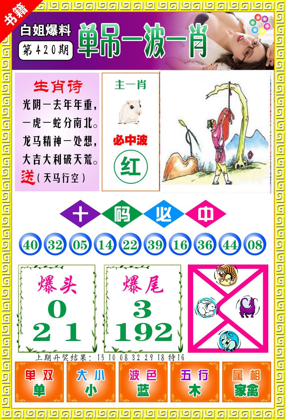 | 0420期:单双四肖八码 开:????? | |