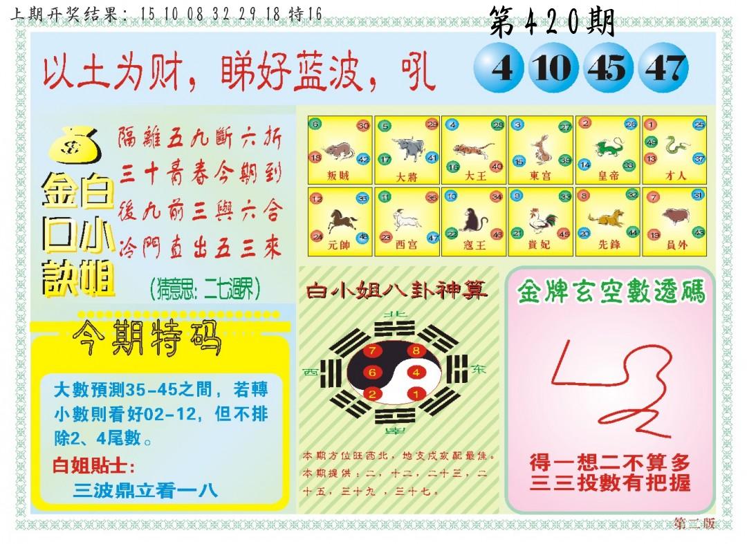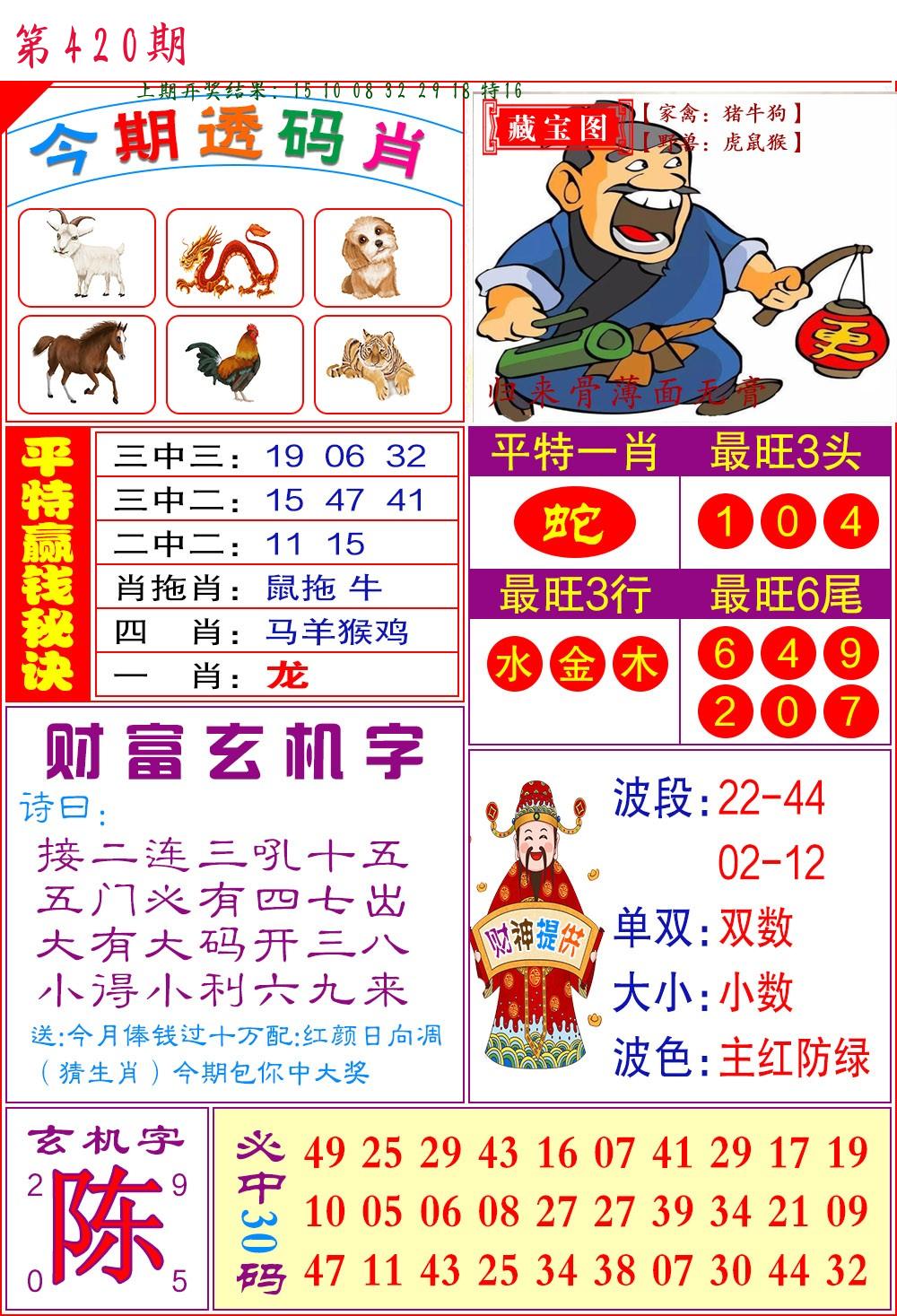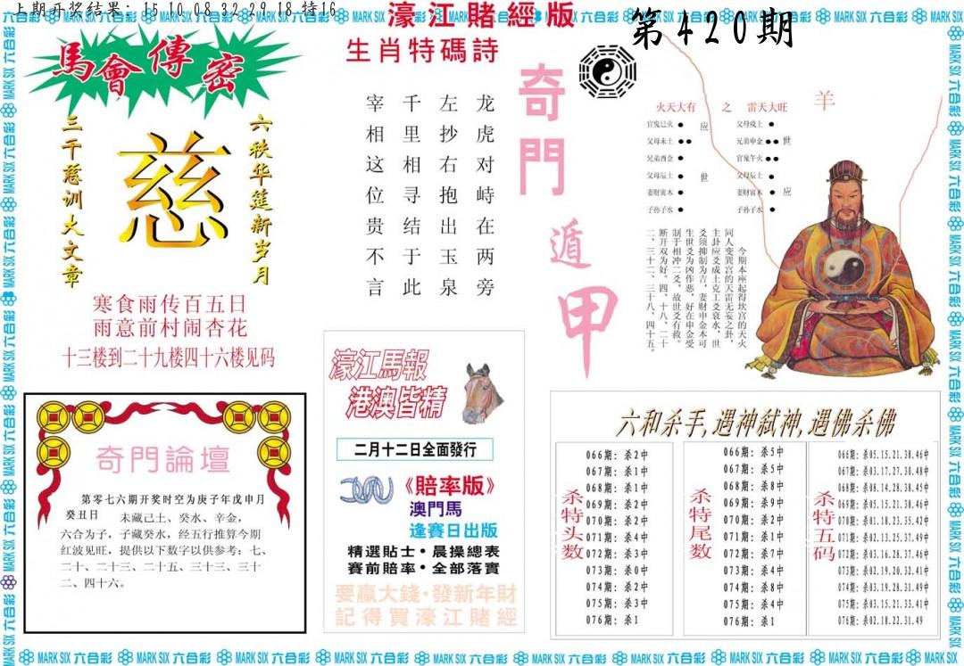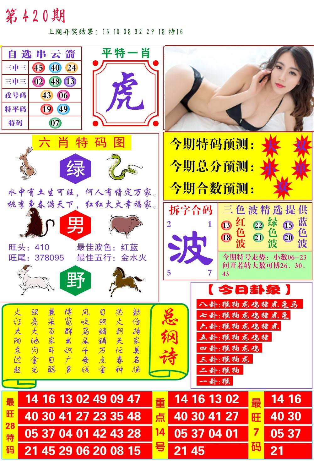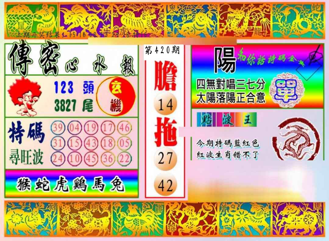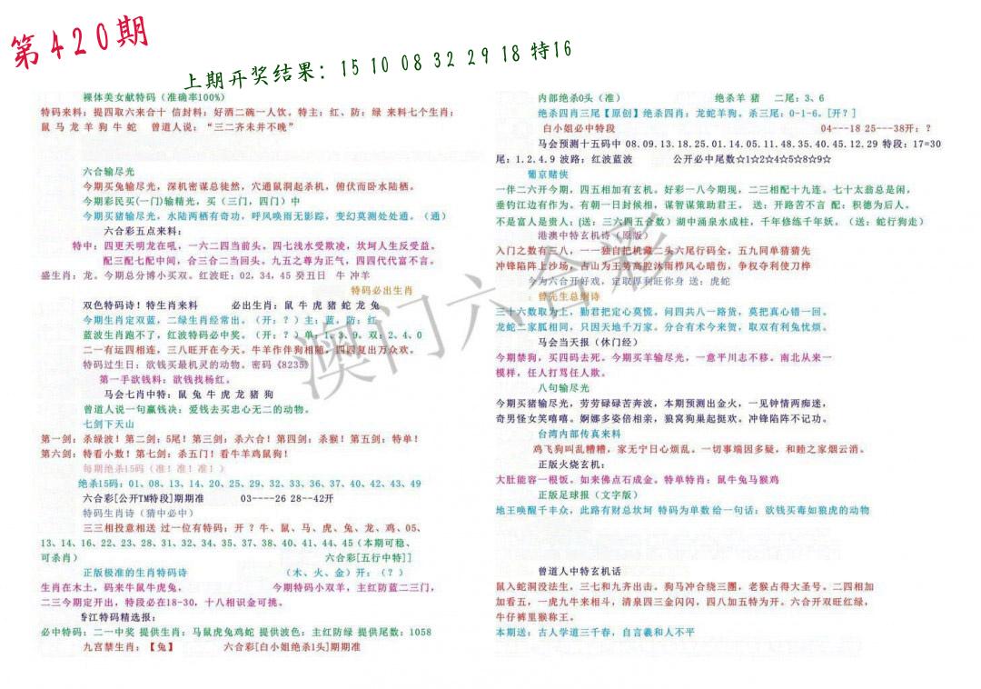 | 0420期:单双四肖八码 开:????? | |