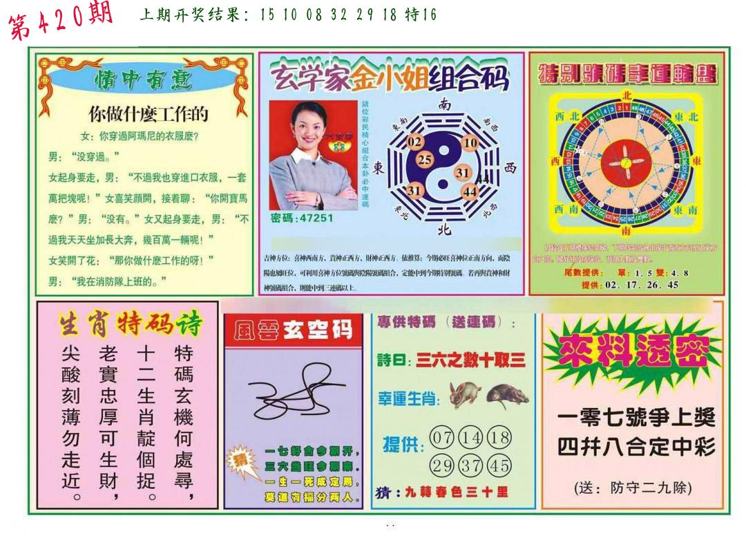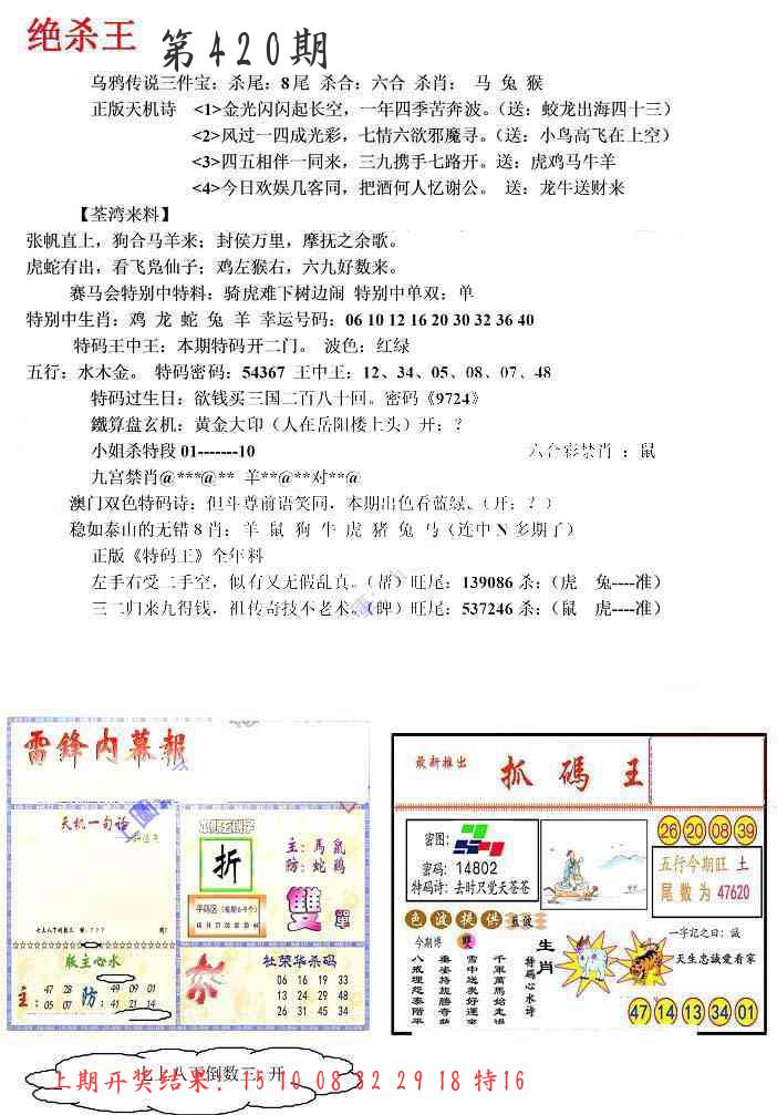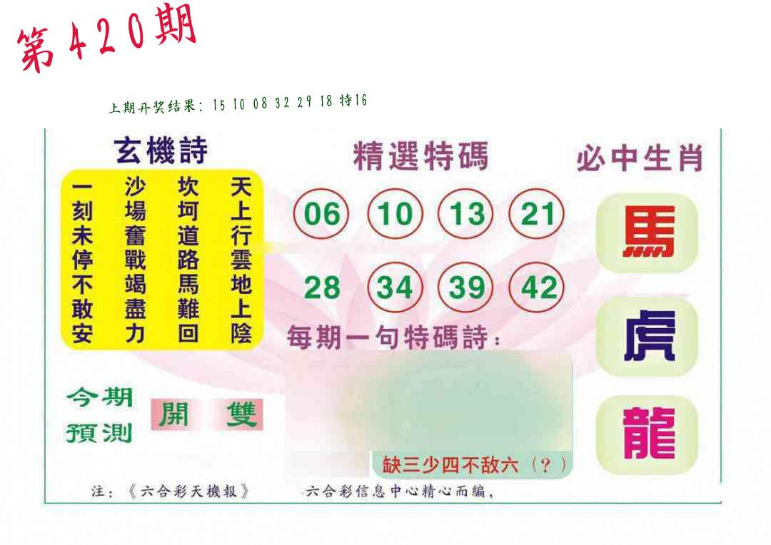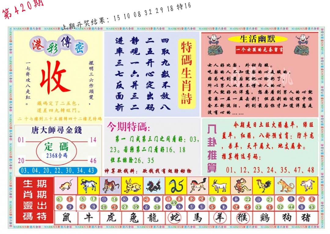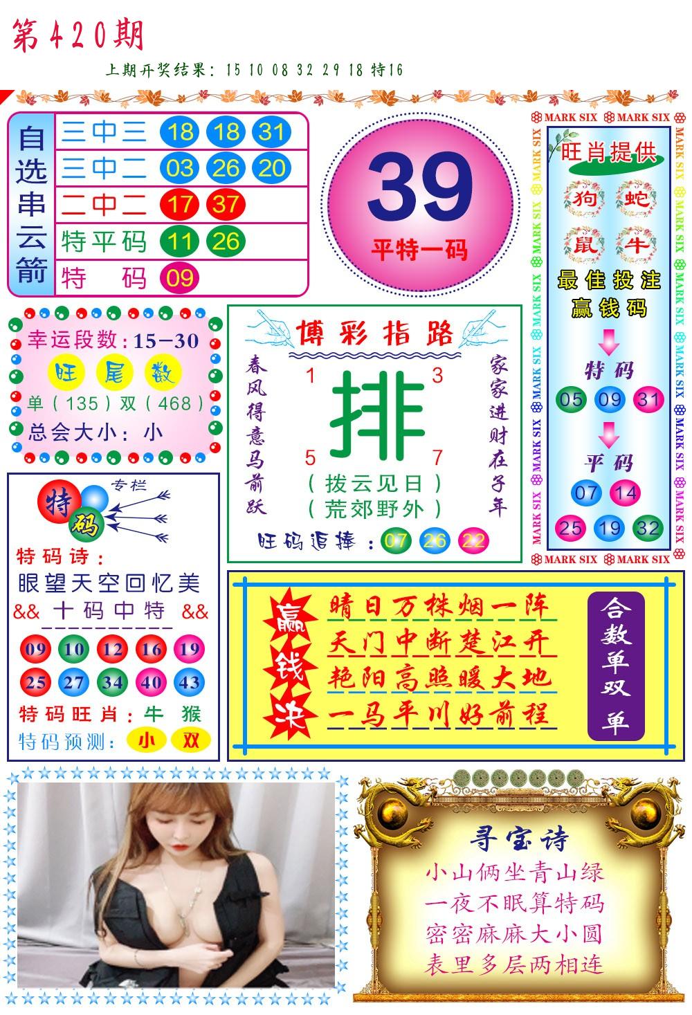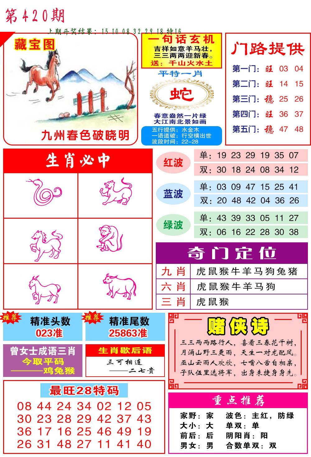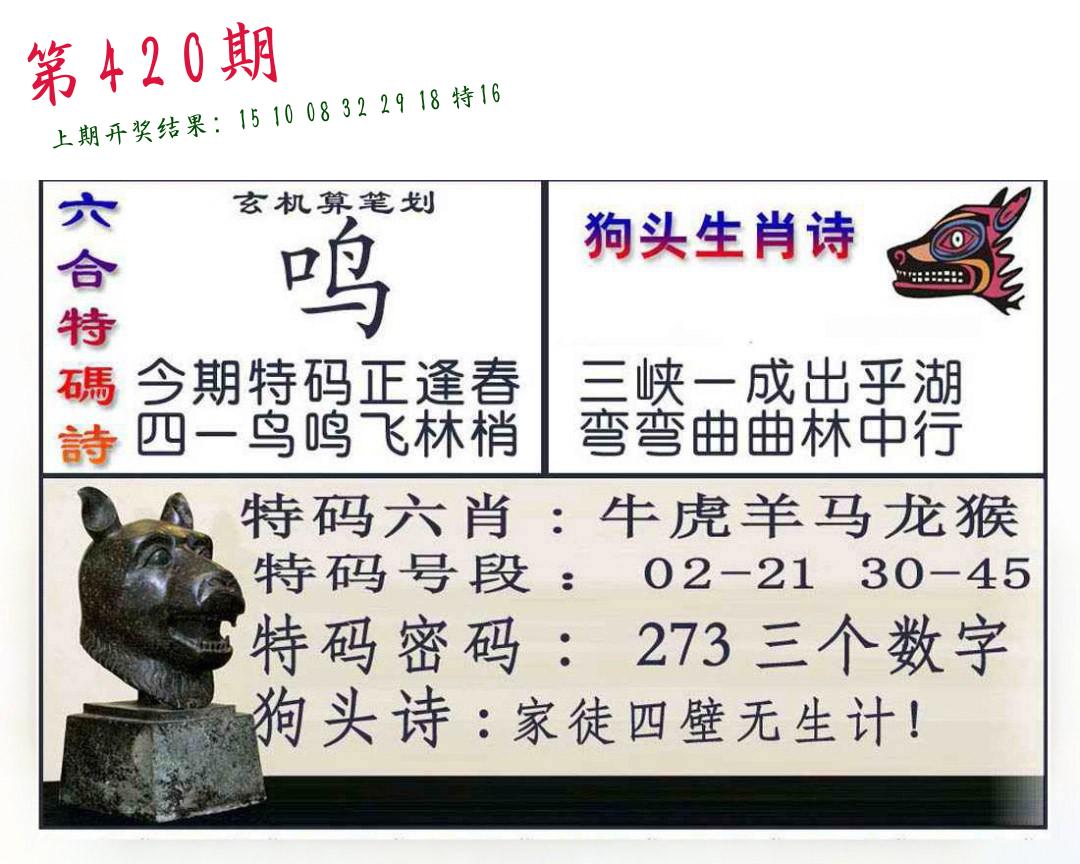 | 0420期:单双四肖八码 开:????? | |