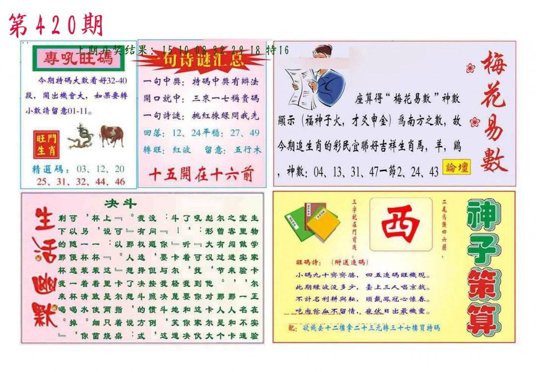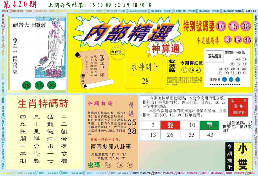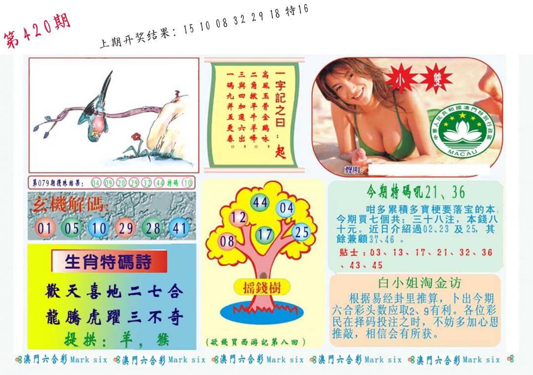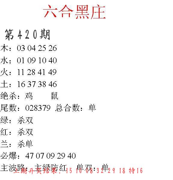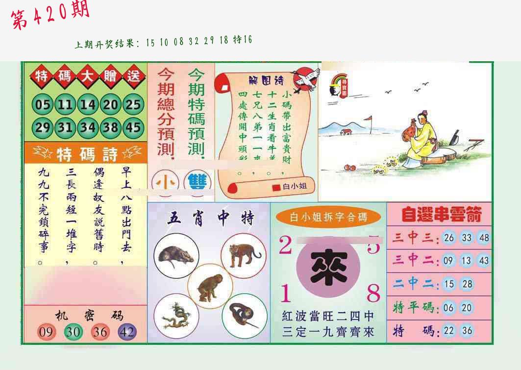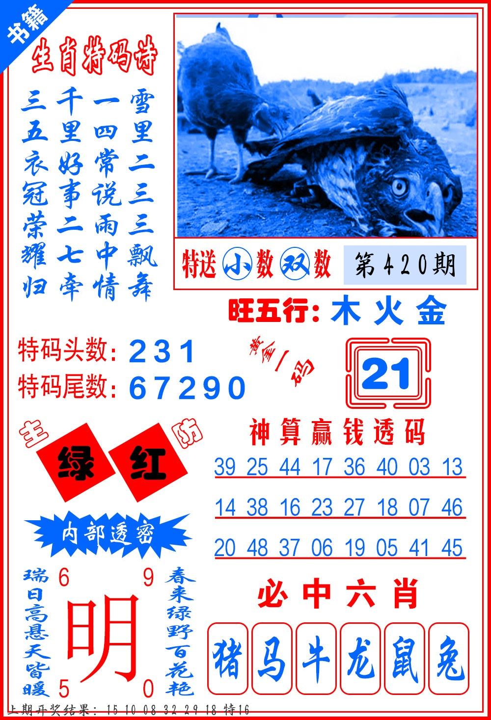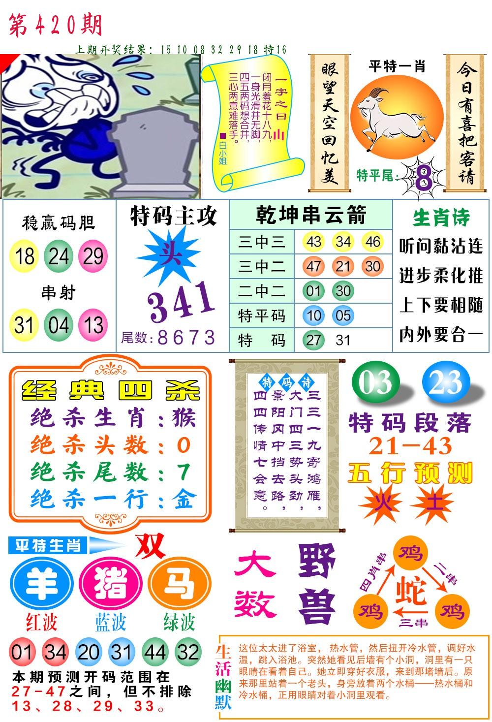 | 0420期:单双四肖八码 开:????? | |