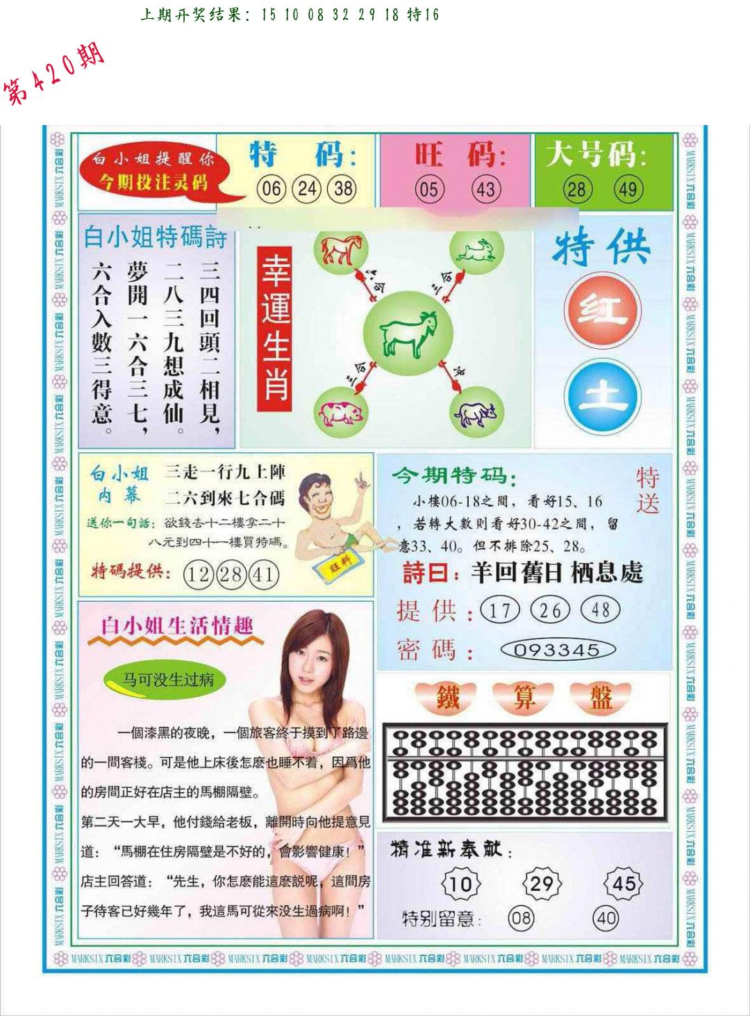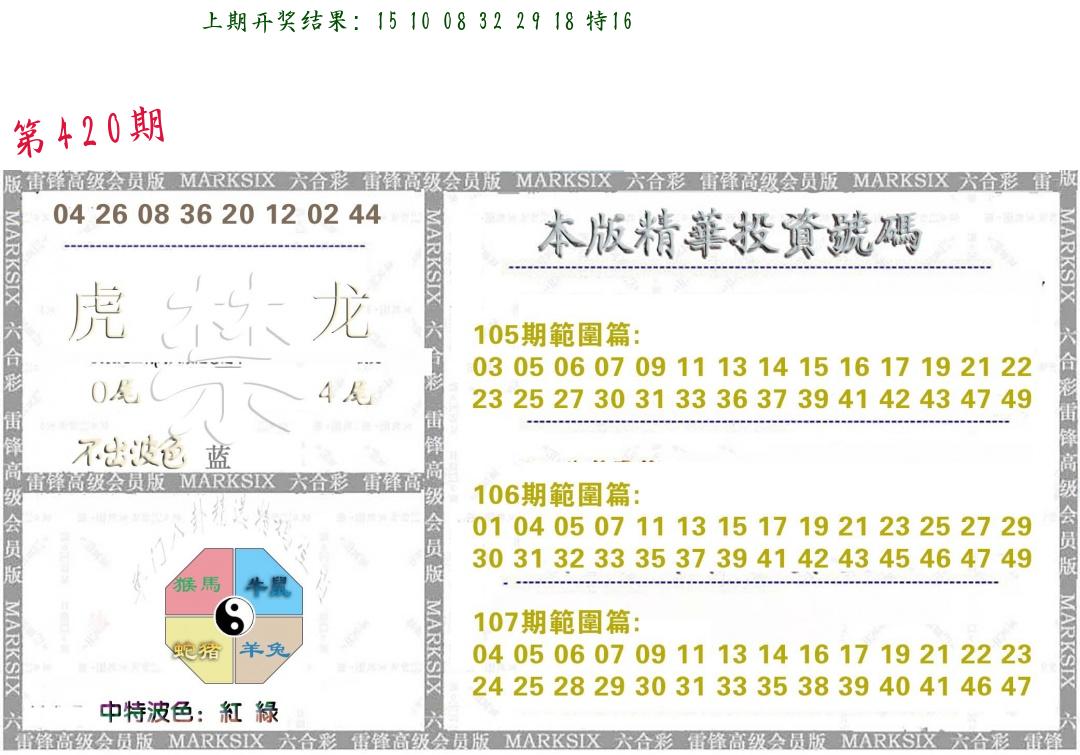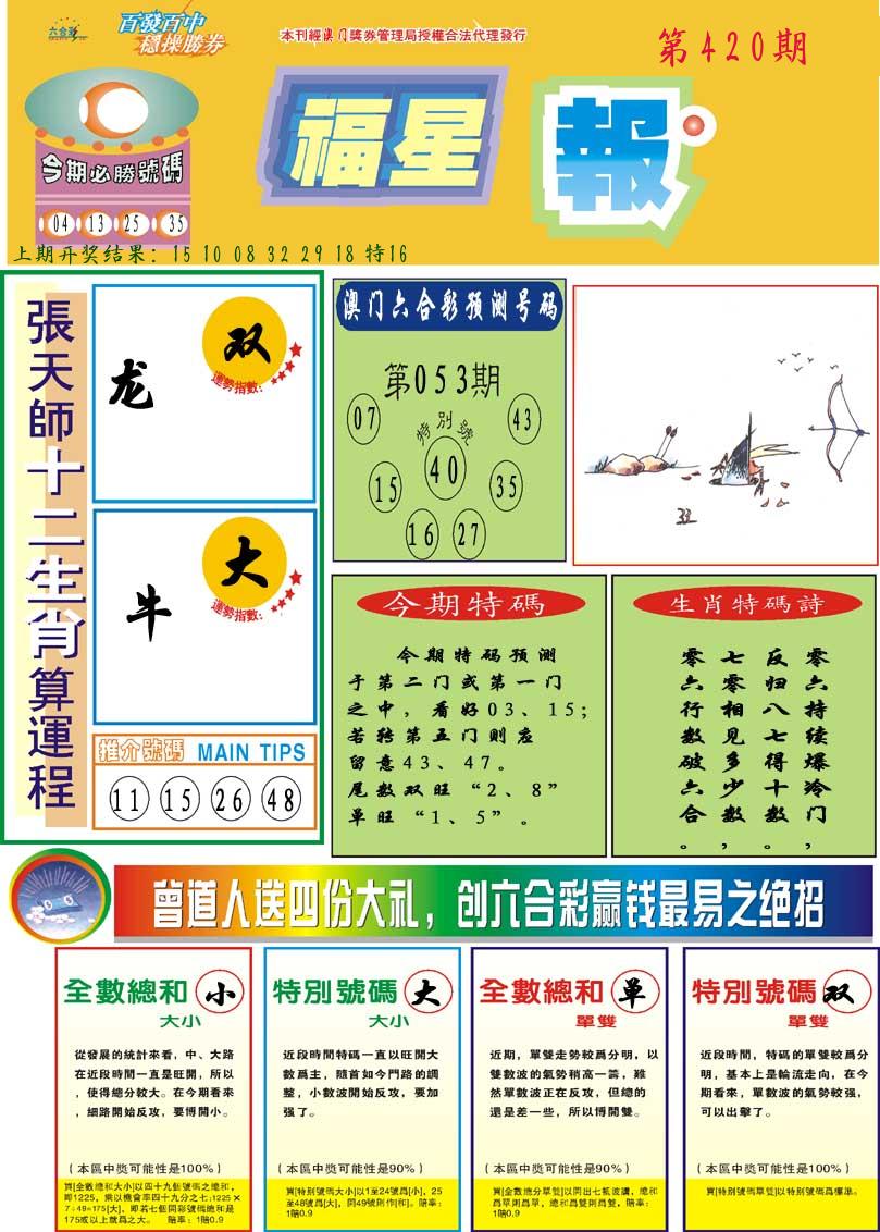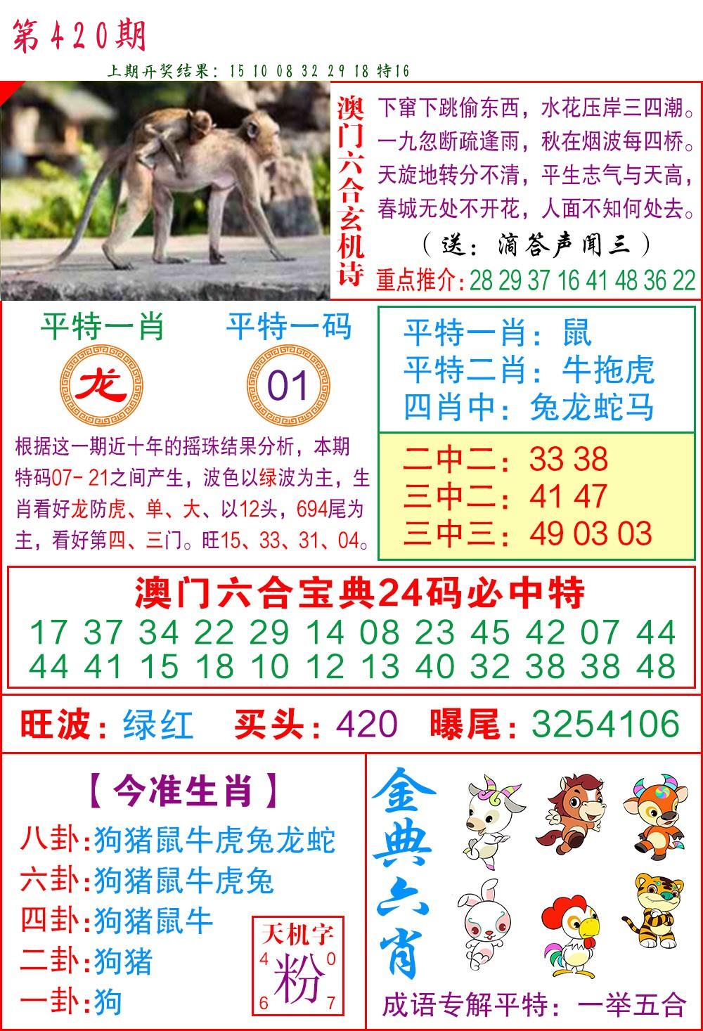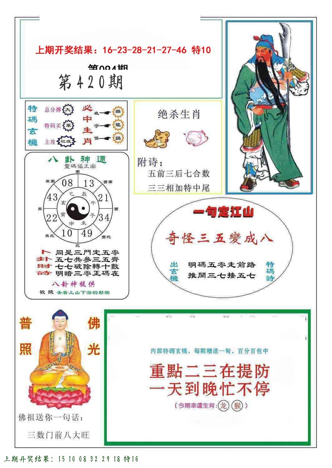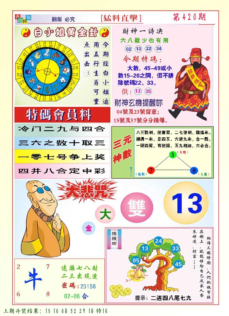 | 0420期:单双四肖八码 开:????? | |