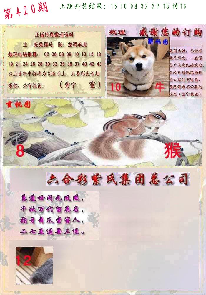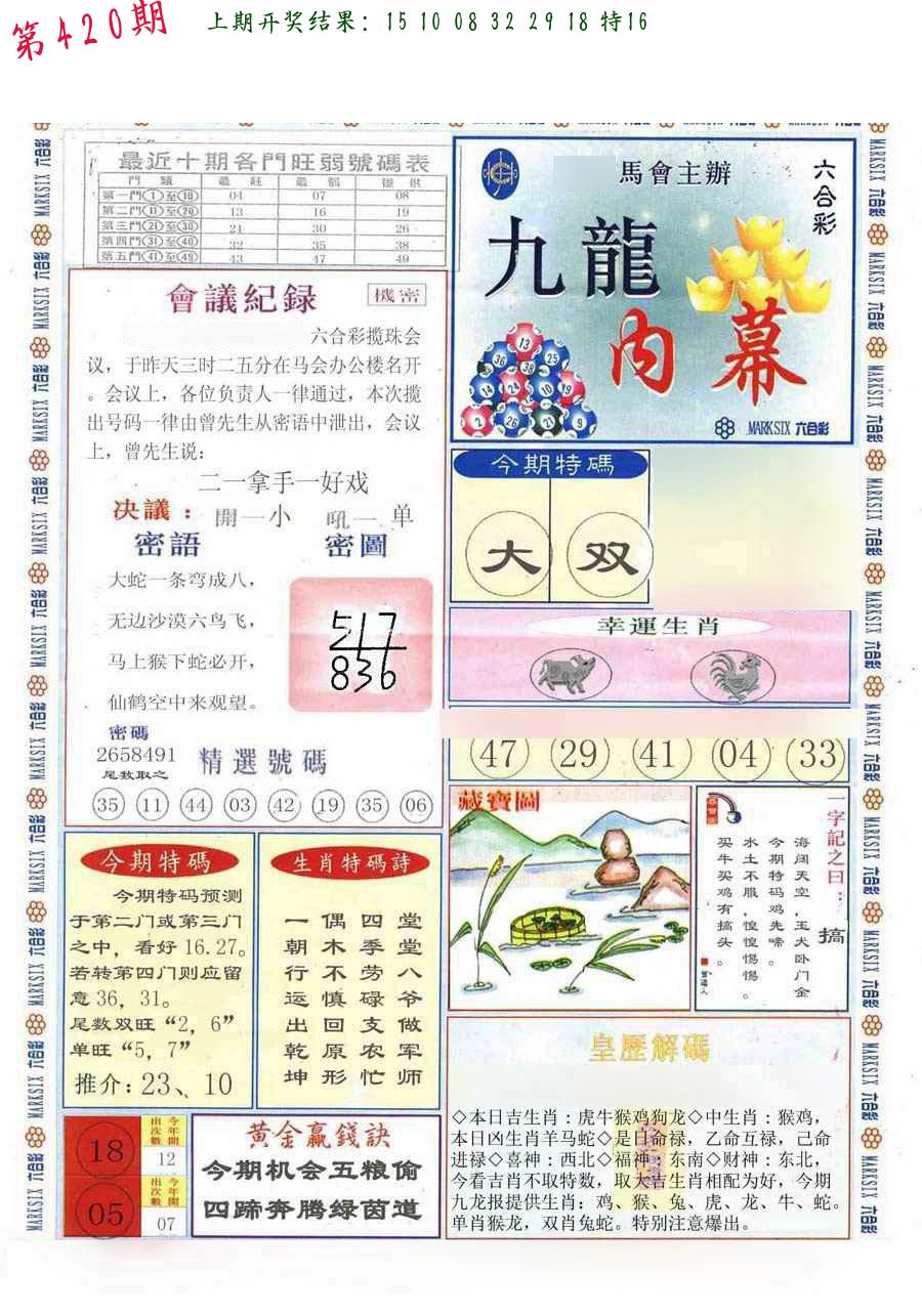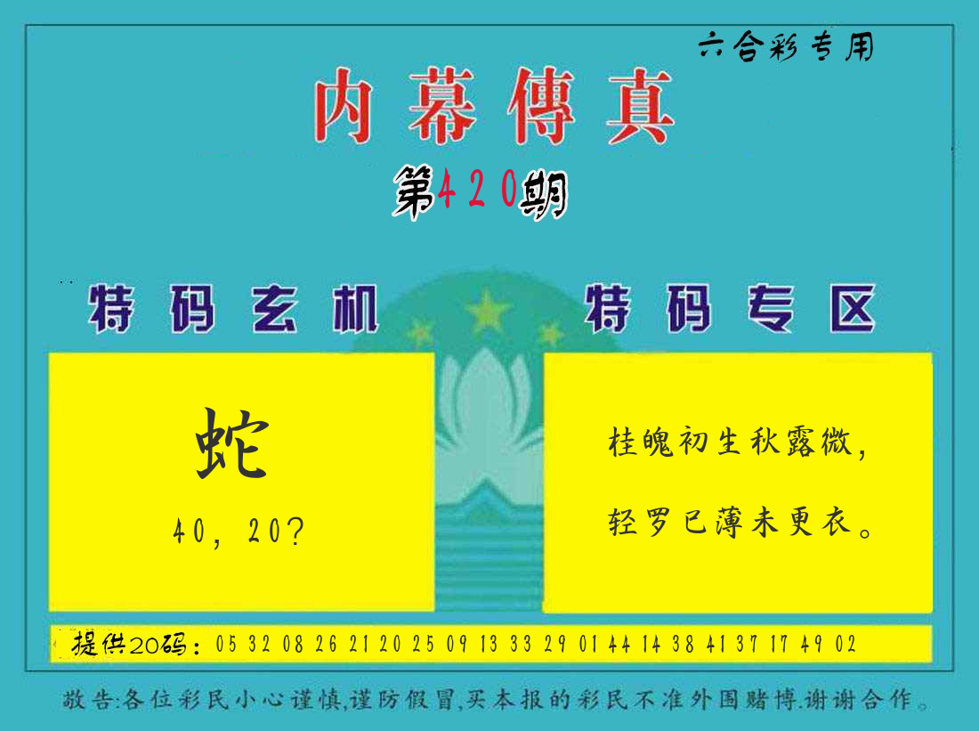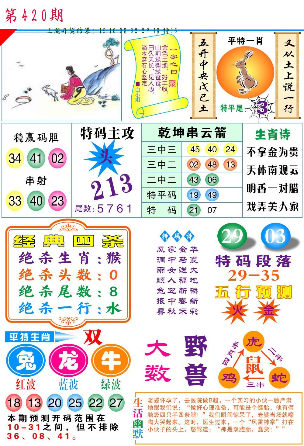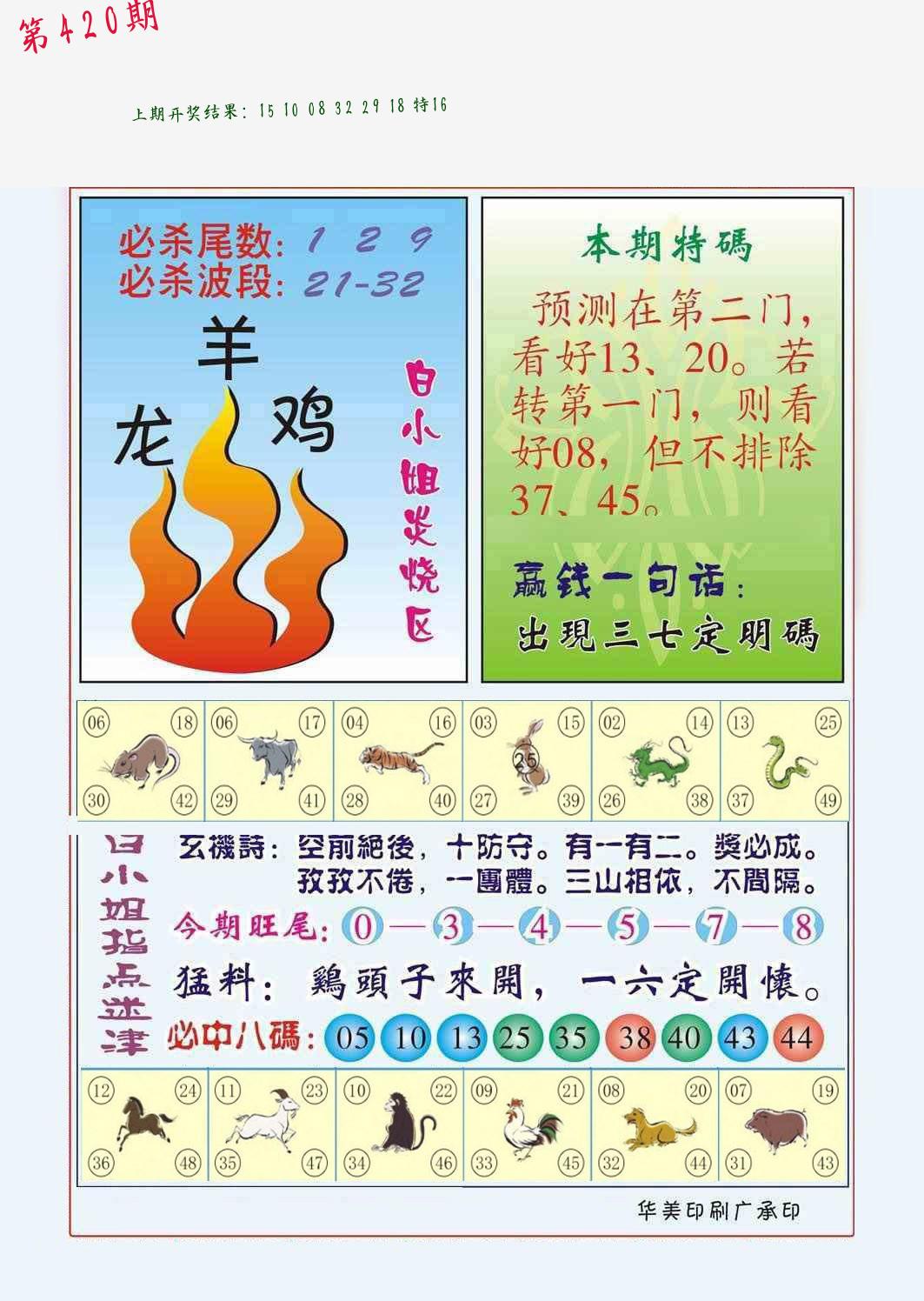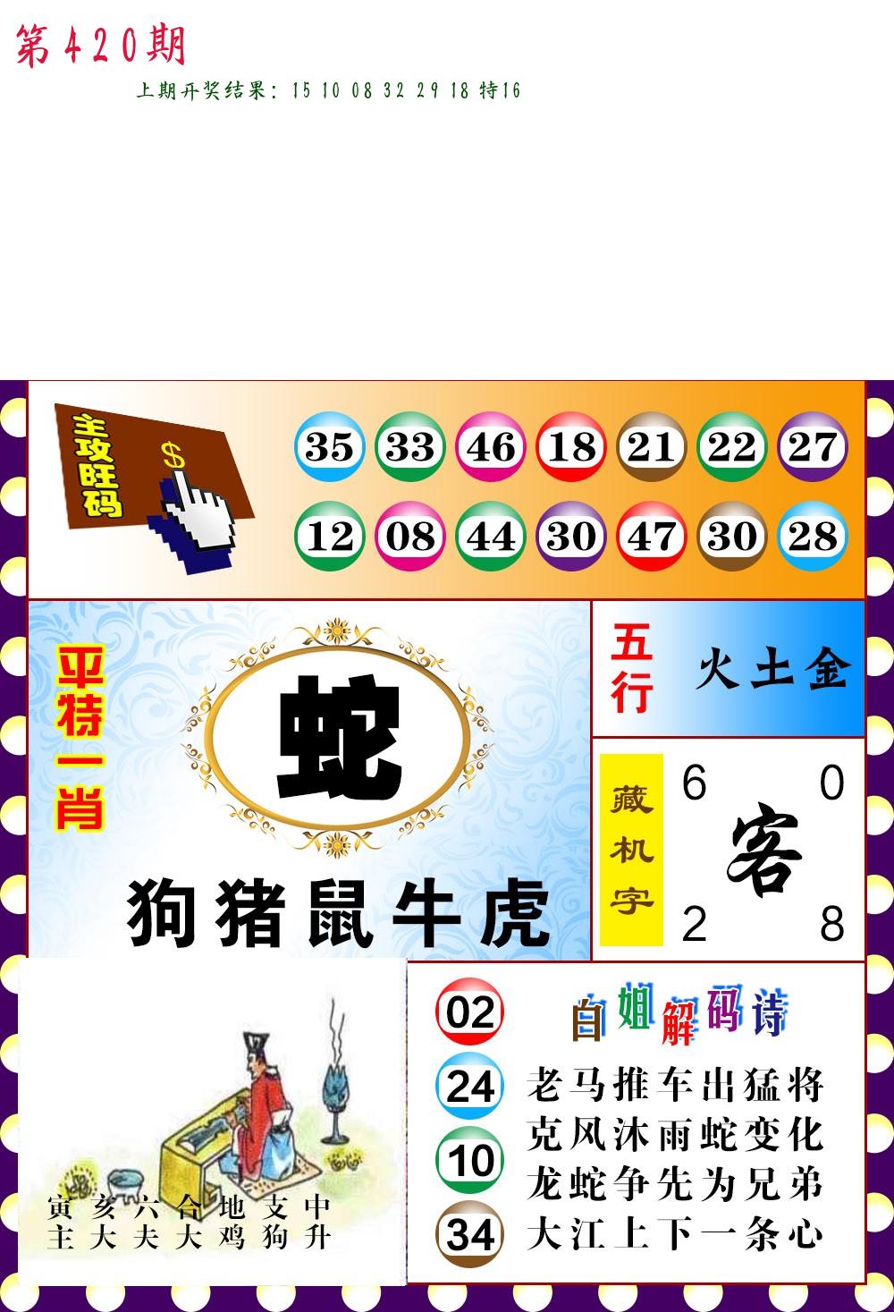 | 0420期:单双四肖八码 开:????? | |