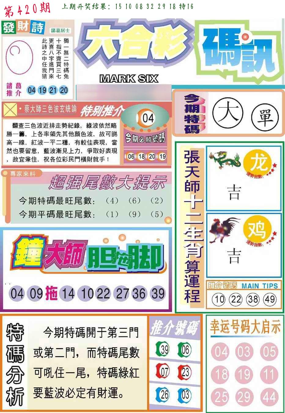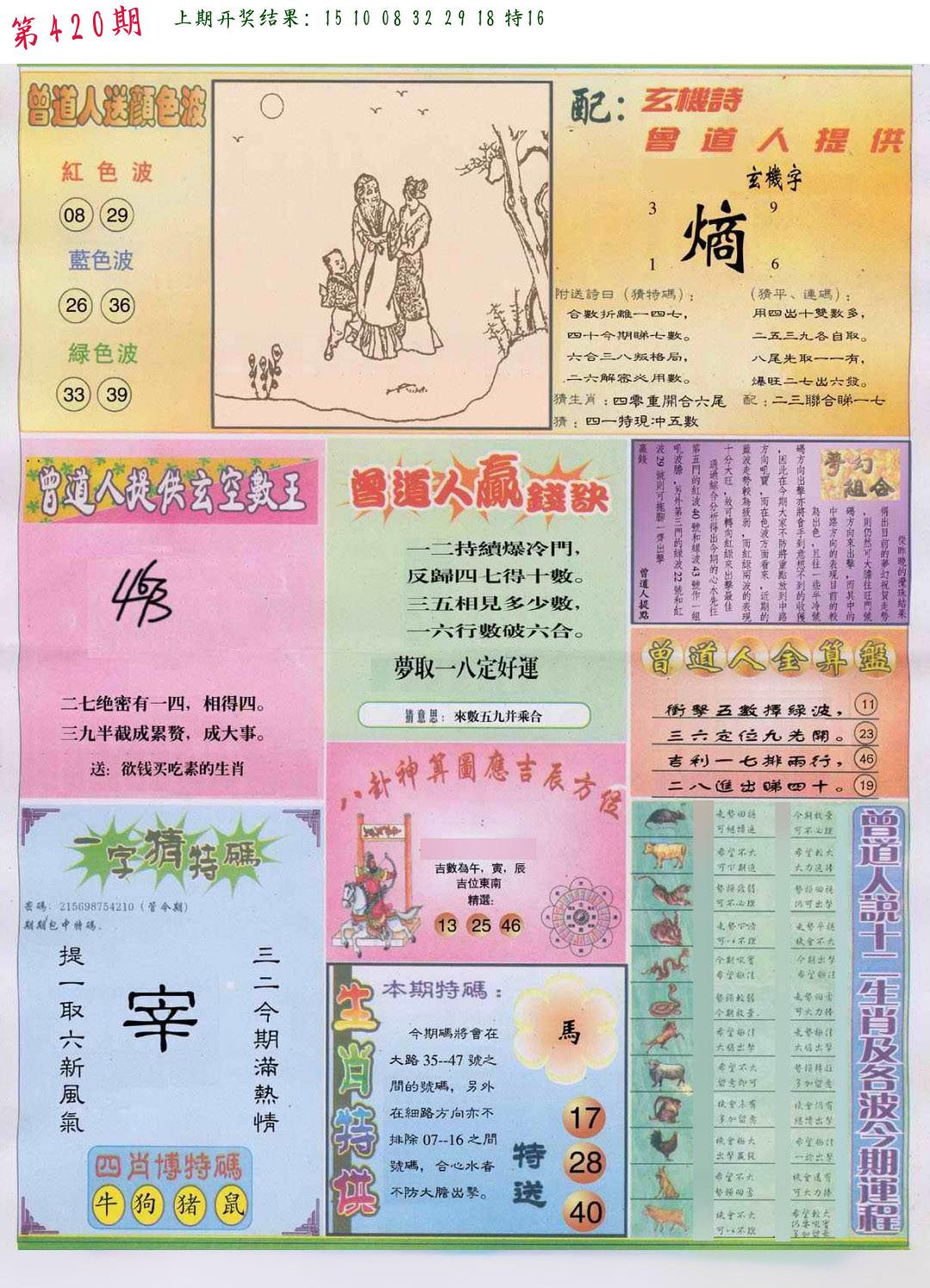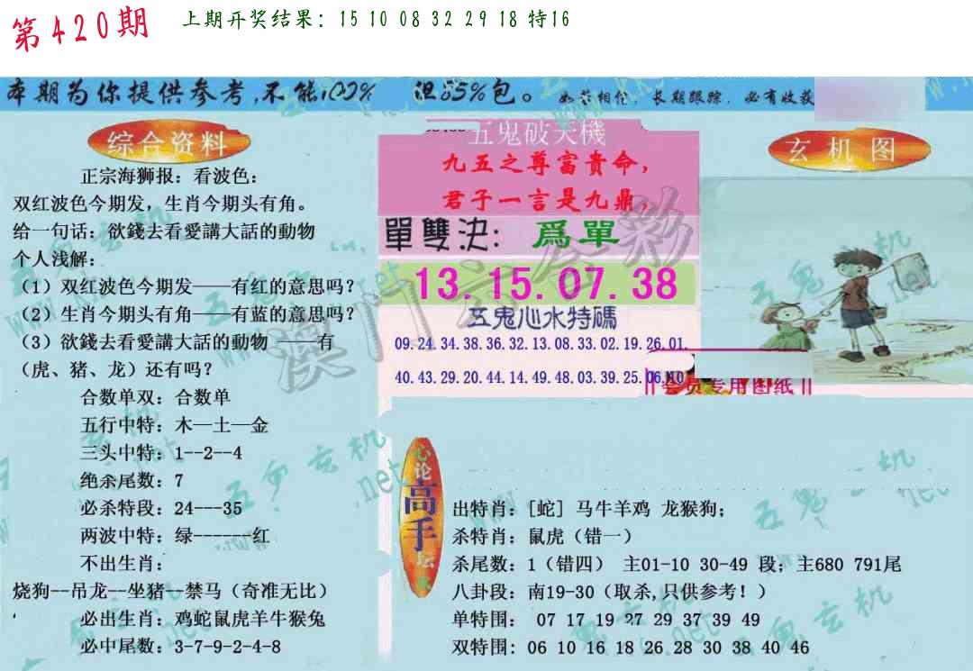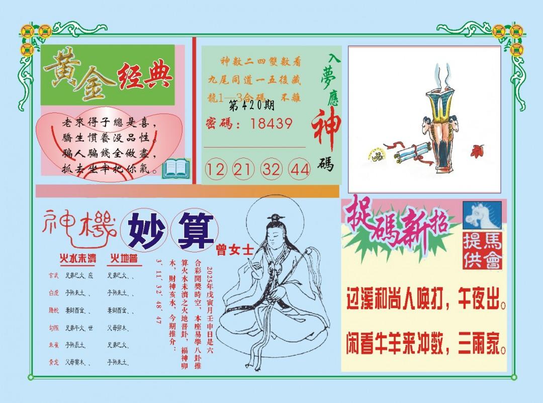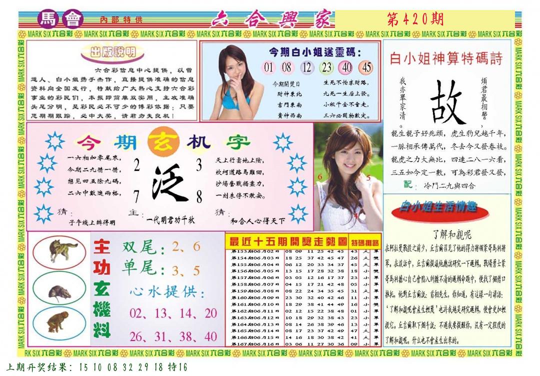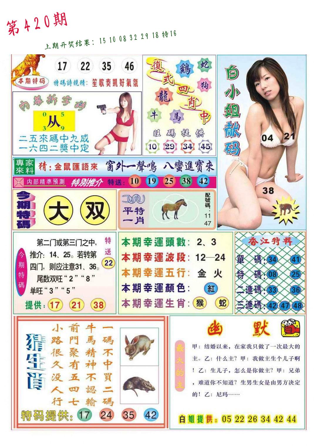 | 0420期:单双四肖八码 开:????? | |