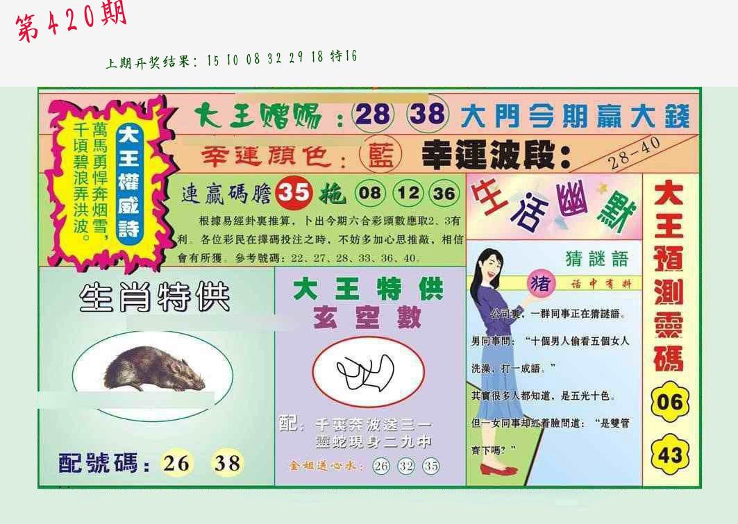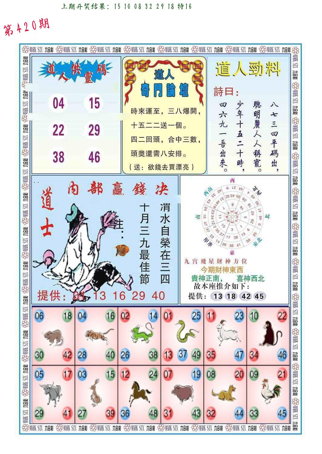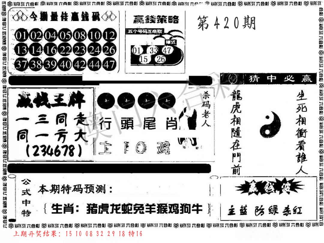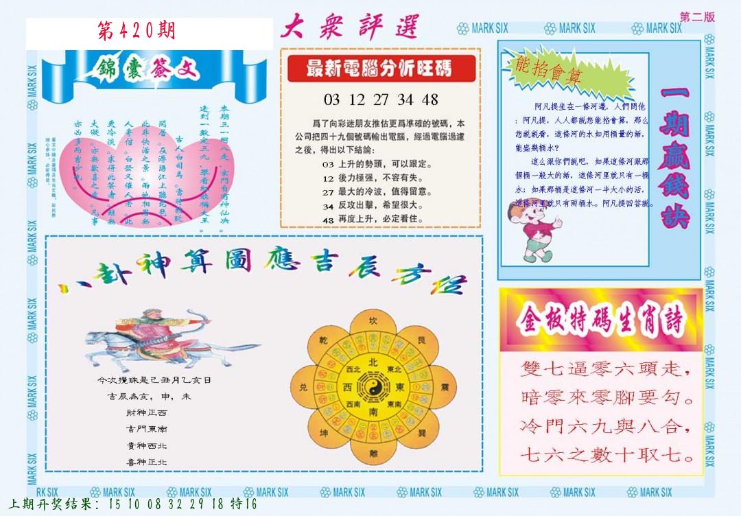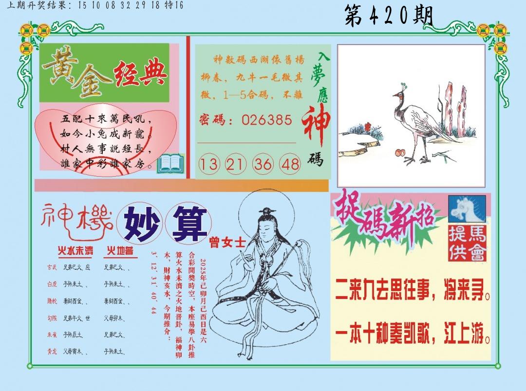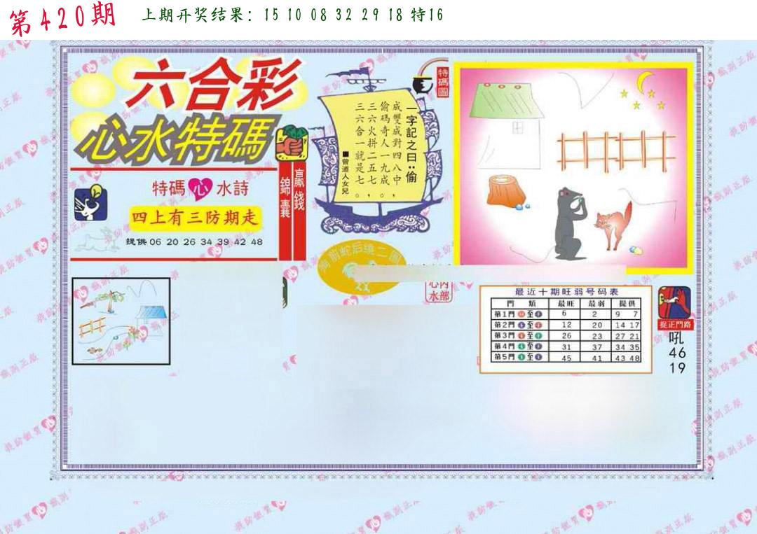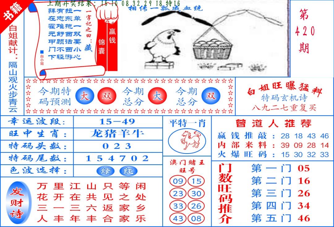 | 0420期:单双四肖八码 开:????? | |