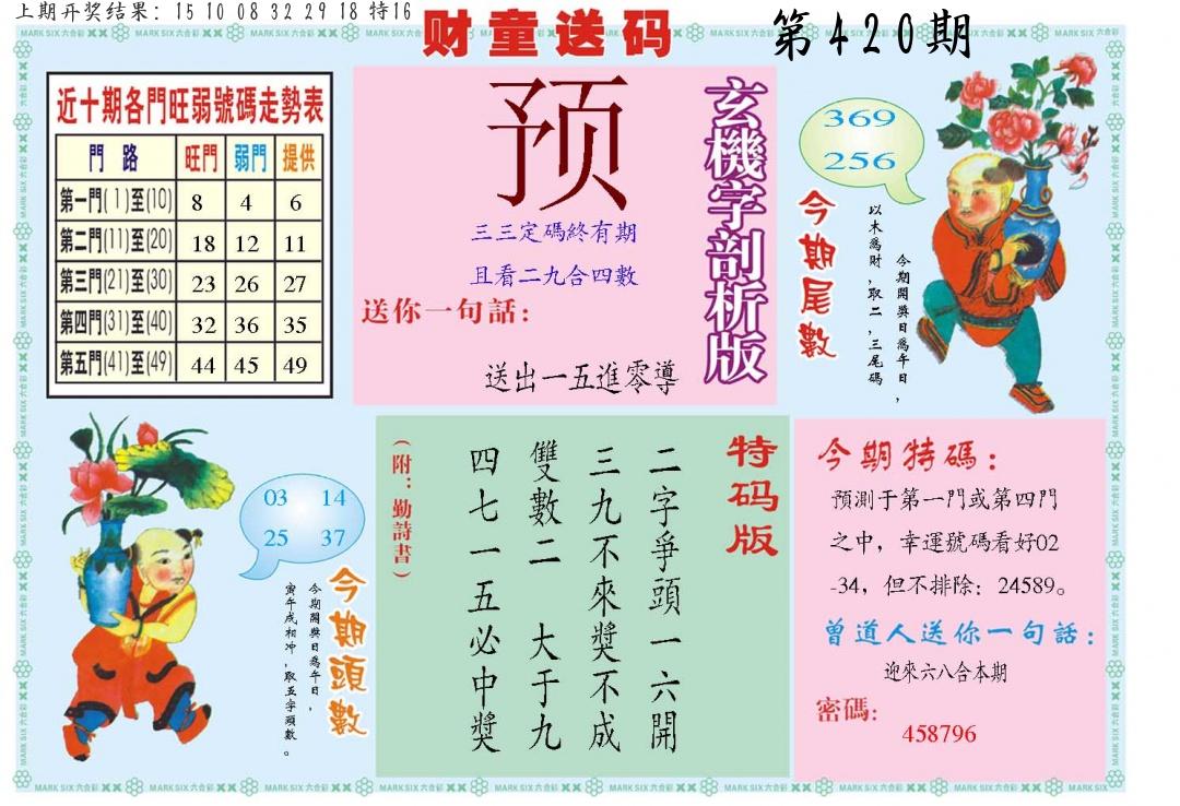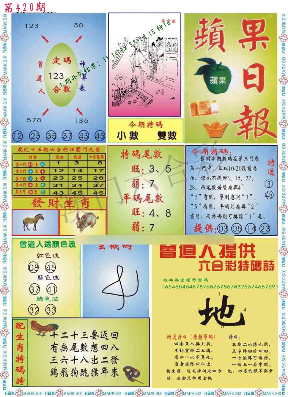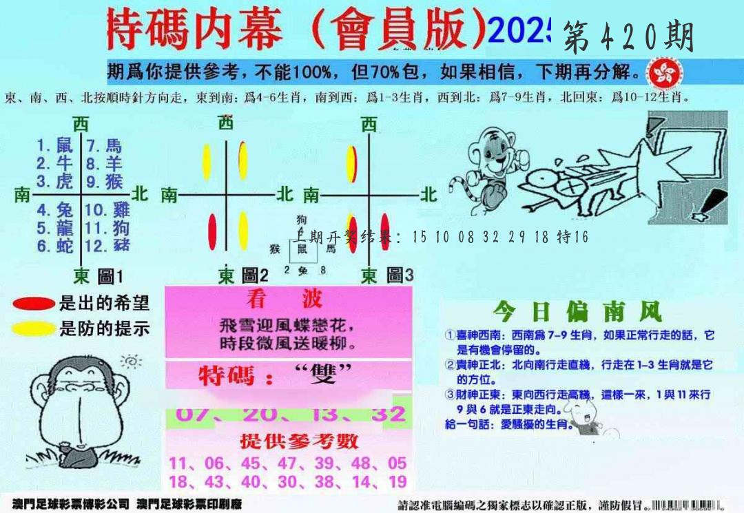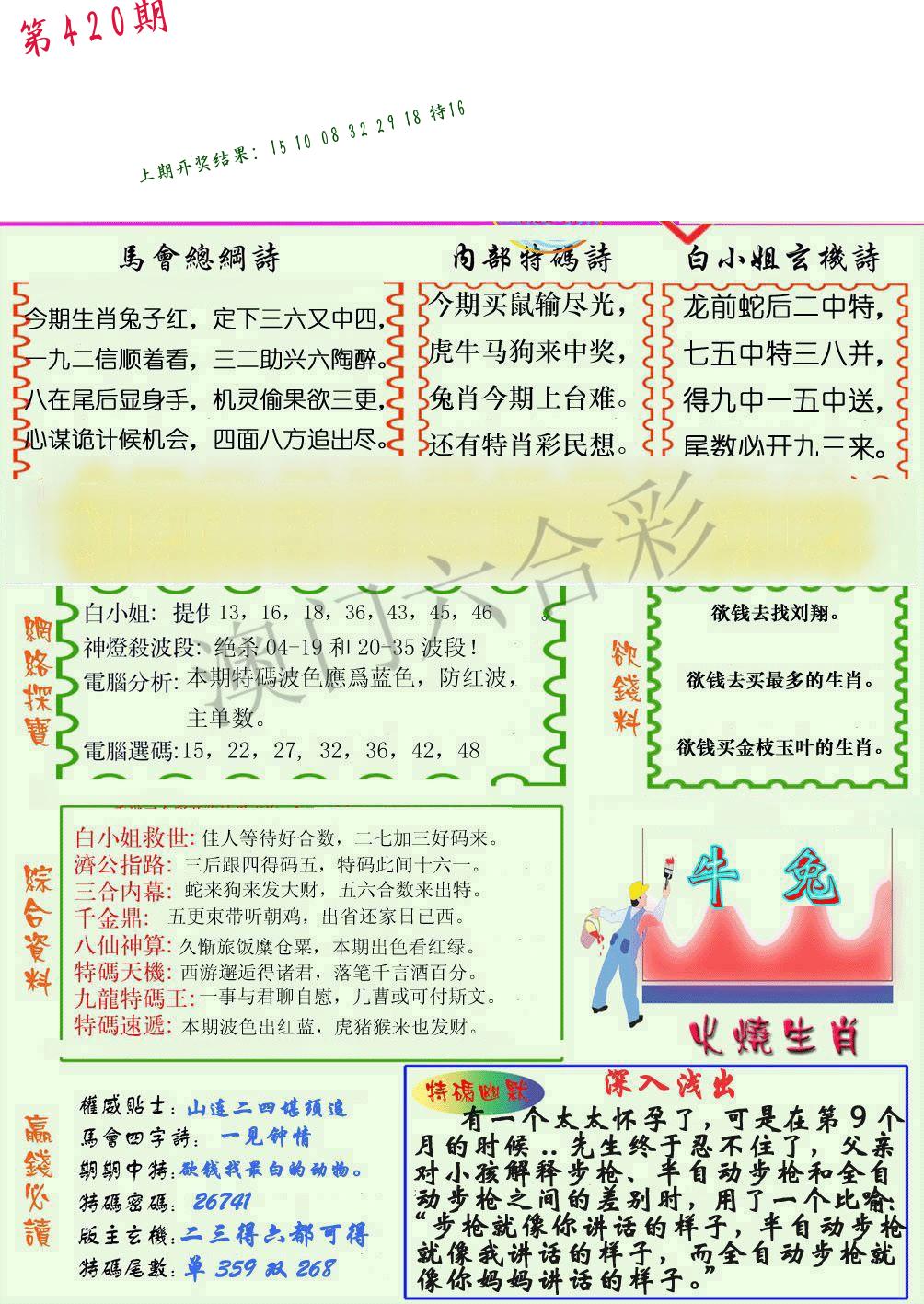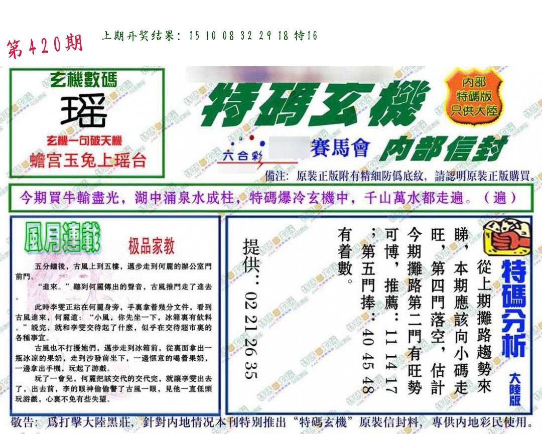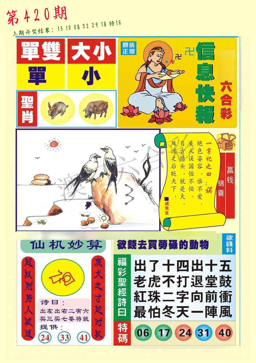 | 0420期:单双四肖八码 开:????? | |
