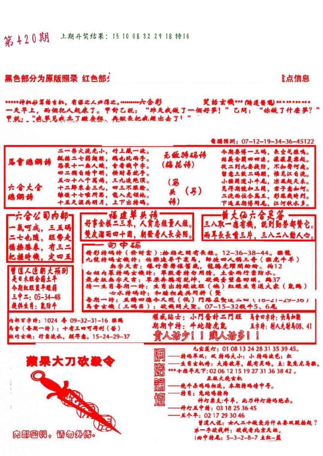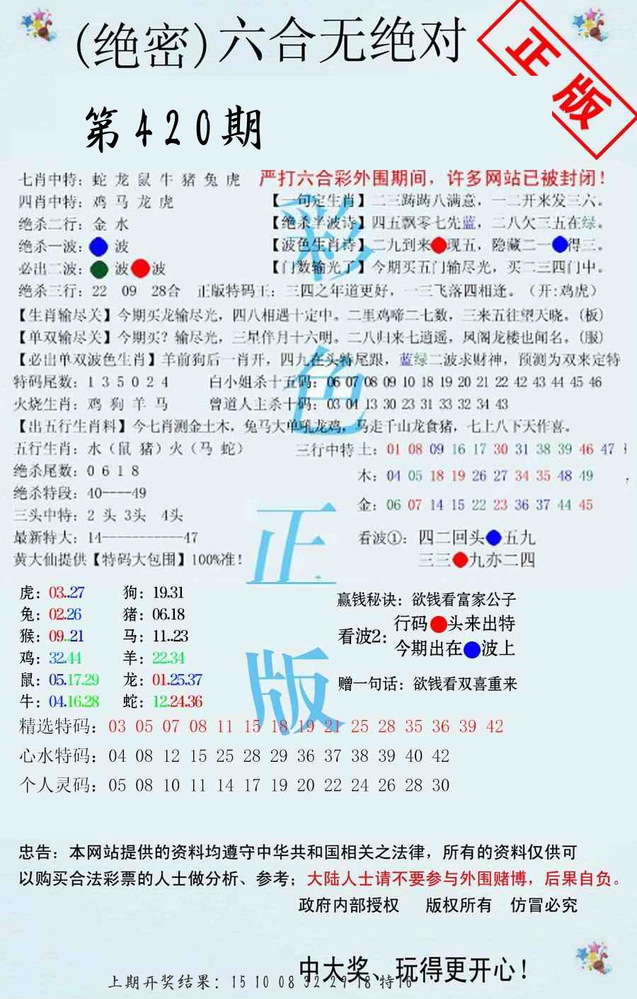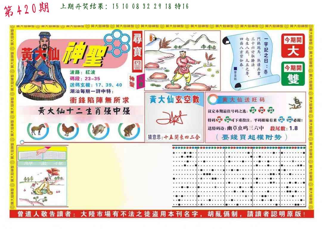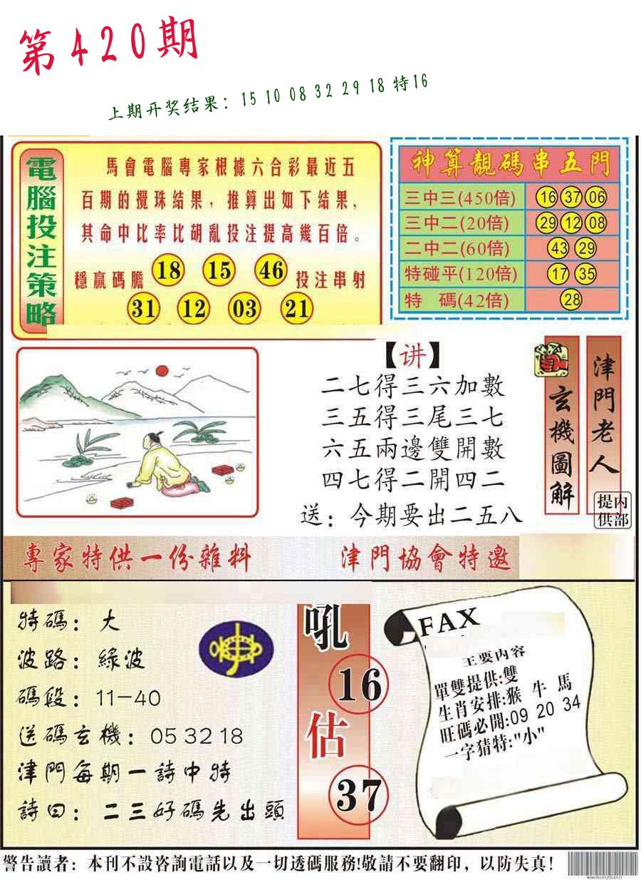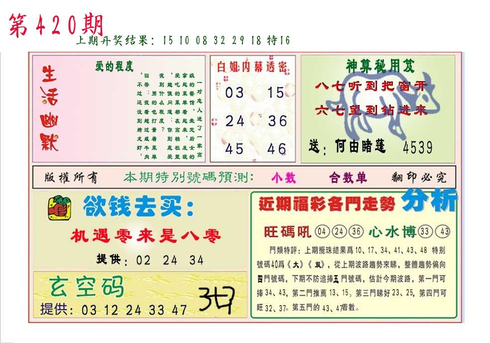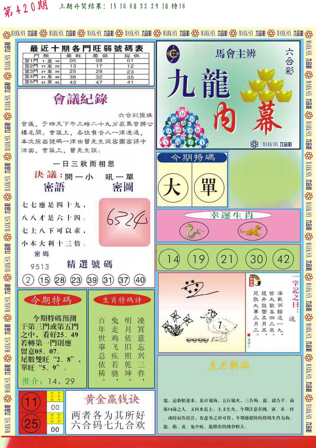 | 0420期:单双四肖八码 开:????? | |