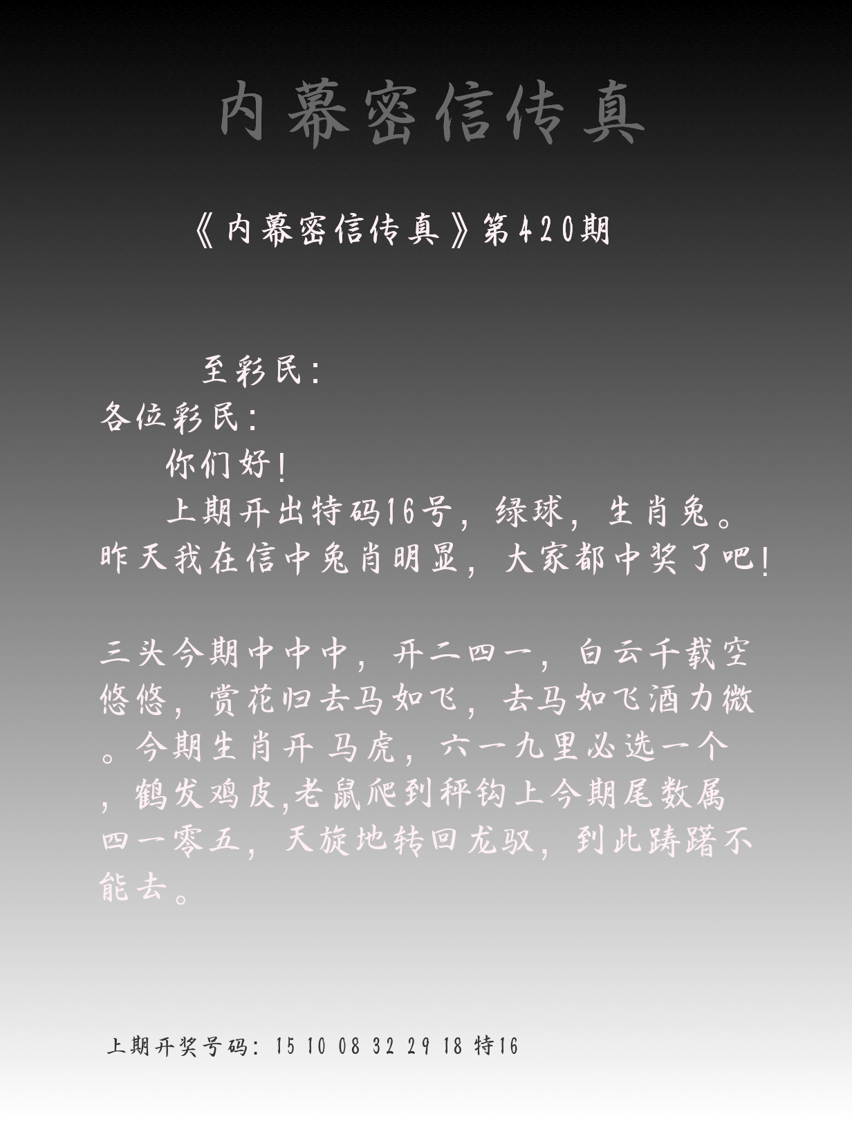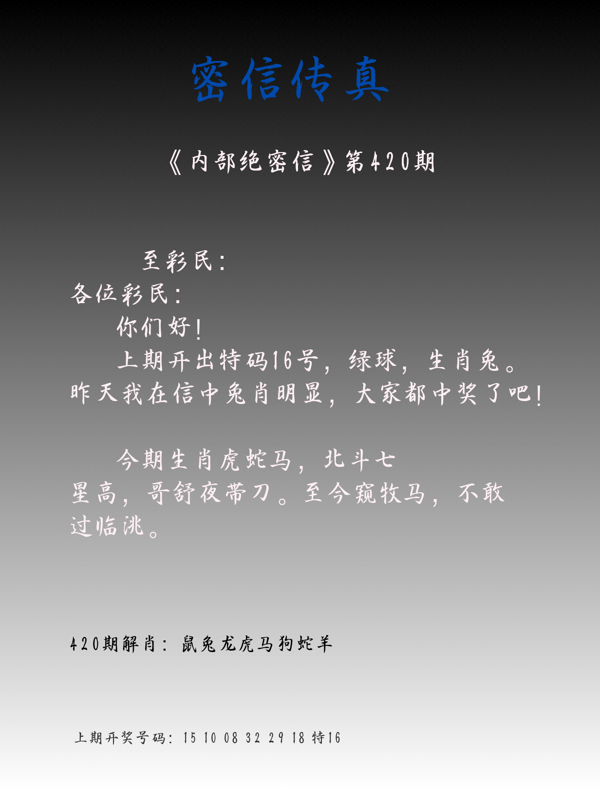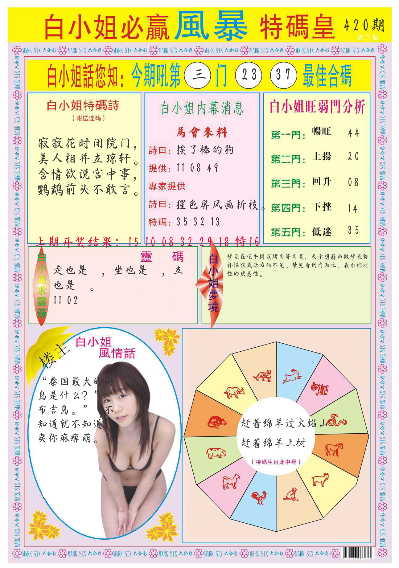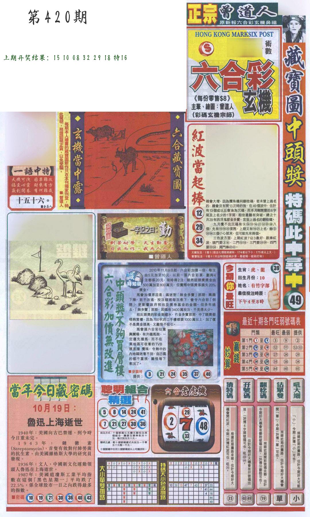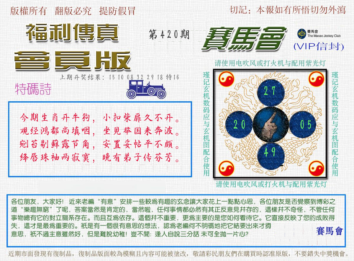 | 0420期:单双四肖八码 开:????? | |