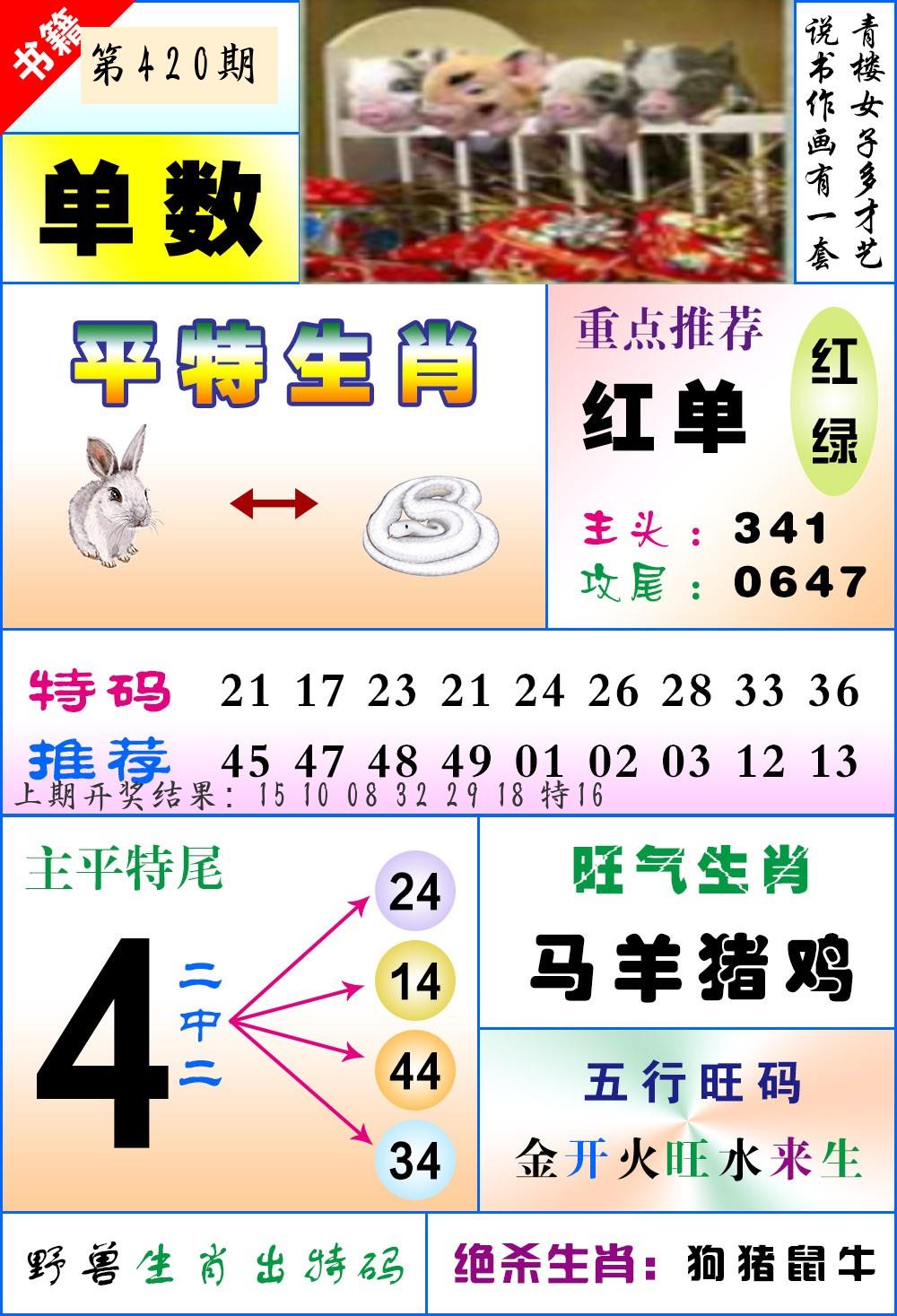 | 0415期:精准单双〖单数〗开:24羊错 | |