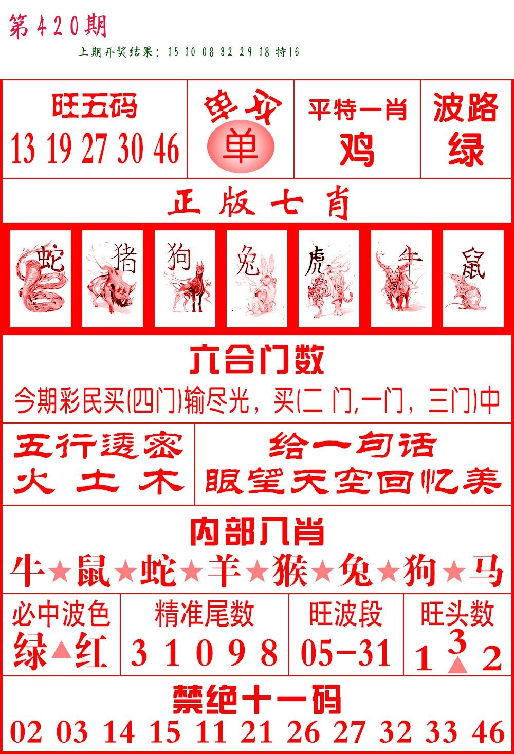| 五肖 | 蛇羊猴马鸡 |